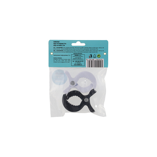 Klipy na kočárek jsou praktickou pomůckou pro rodiče k přichycení pleny na kočárek či autosedačku. Klipy lze použít také na přichycení osušek, sítí proti hmyzu apod. Obsahuje 2 ks. Rozměry balení 13 x 16 x 3 cm.