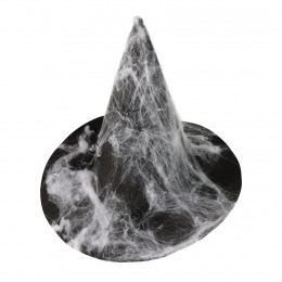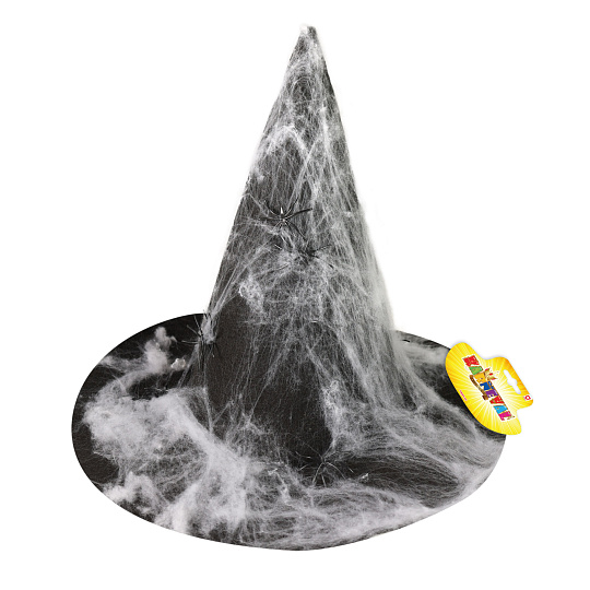 Čarodějnický klobouk s ozdobnou pavučinou.