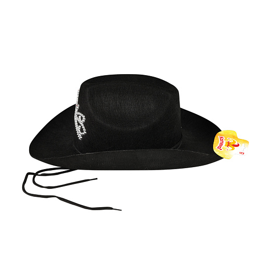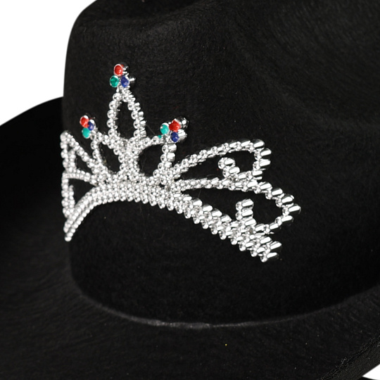 Tento černý elegantní kovbojský klobouk je zdoben stříbrnou korunkou. Klobouk je určen pro dospělé. Kovbojský dámský klobouk je vysoký 14 cm. S tímto kloboukem budeš nepřehlédnutelná!