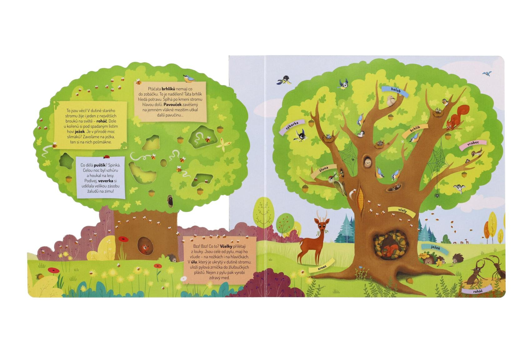 Poznej život na stromě! Vítr se prohání vysoko v koruně stromu. Větvičky o sebe pleskají a kdesi dole u velké škvíry někdo zaklepal na kmen stromu. „Datle, co to vyvádíš?“ zavrtěla sojka hlavičkou. „Podívej, vzbudil jsi veverky!“ Pavouček zavěšený na jemném vlákně mezitím utkal další pavučinu a v hnízdě zakukala kukačka. Tak je to na stromě skoro každý den. Jeden dub je jako dům, ve kterém bydlí spousta zvířat. Některá z nich už možná znáš. Tak pojď dál, vezmeme tě dovnitř, na návštěvu do starého stromu…