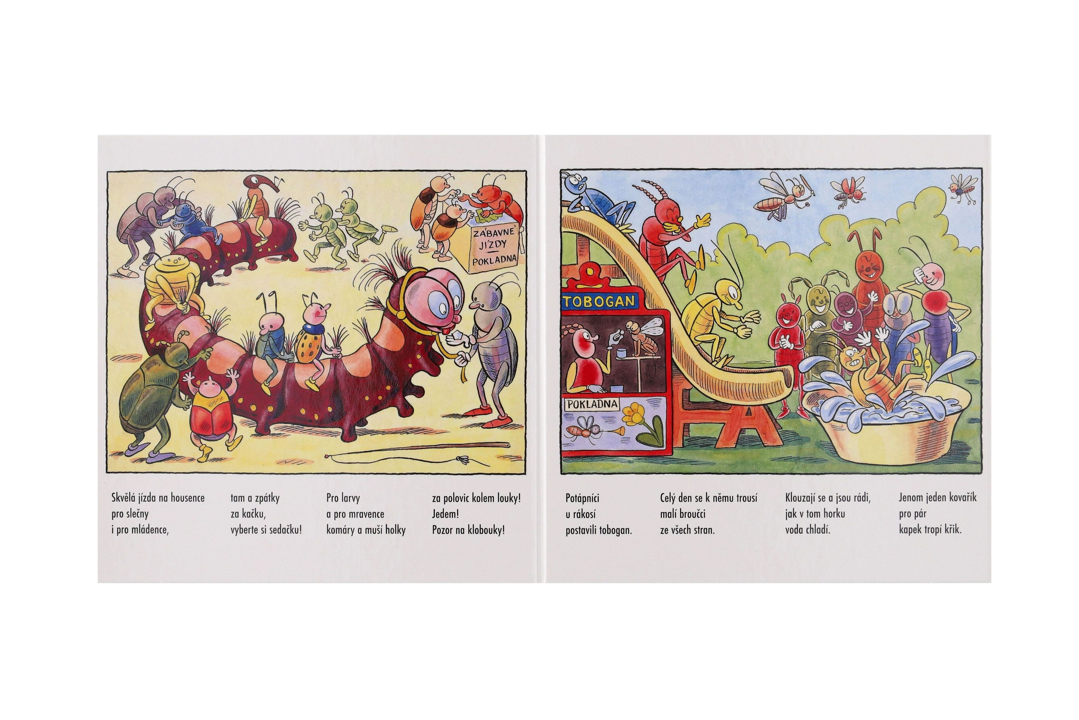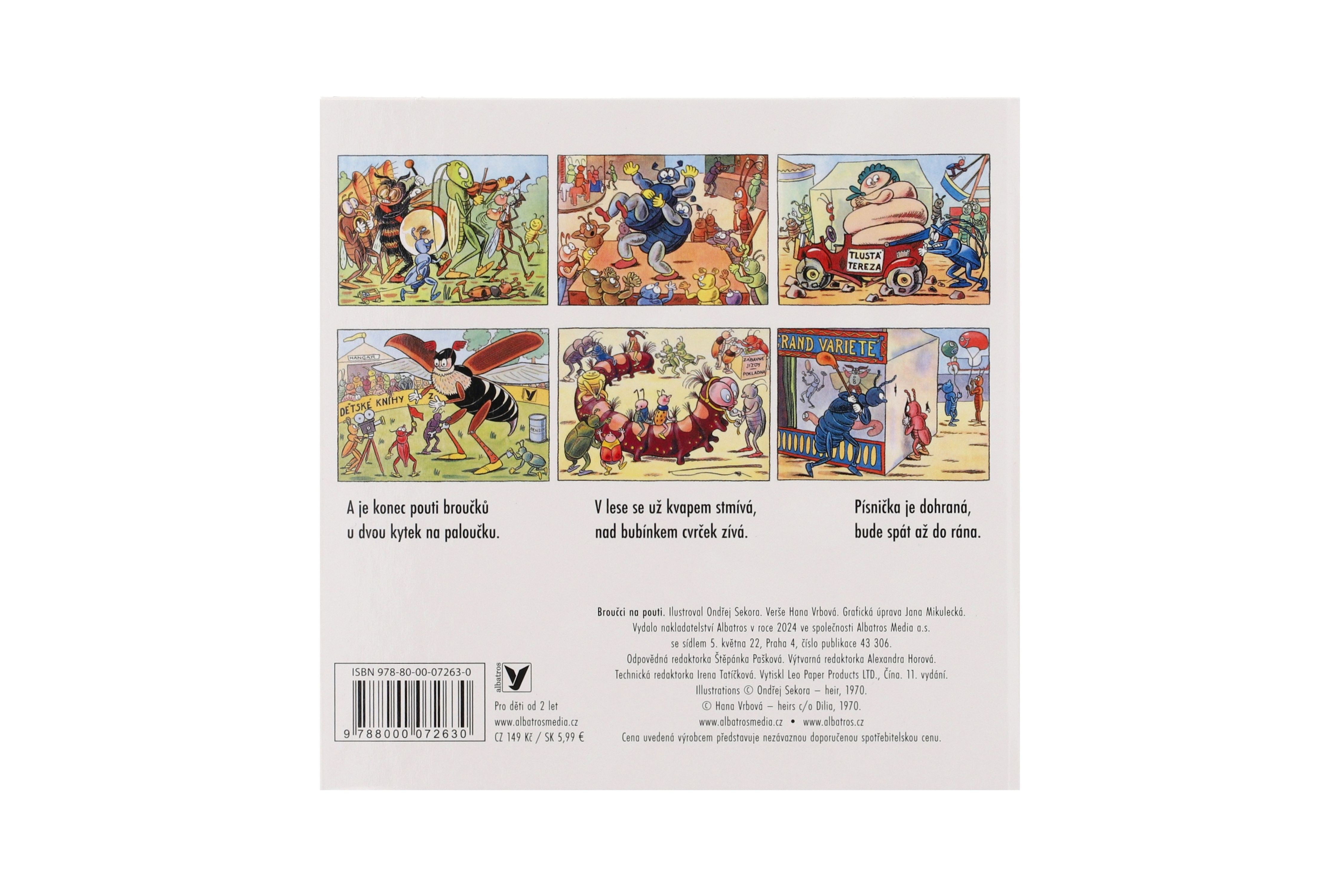 Rytmické verše H. Vrbové jsou snadno zapamatovatelné a dítě si navíc rozšíří slovní zásobu. Dozví se o jedné „broučí“ pouti, o tom, co všechno si tam broučci užijí. Komár s čmelákem a kobylkou hrají v orchestru, chrobáci zápasí na žíněnkách, luční koník závodí jak o život , u paní včelky si něco smlsnou, zažijí skvělou jízdu na housence i mnoho dalších legrací. Rozměr knihy: 15,5 x 15 cm Vhodné pro děti od 2 let