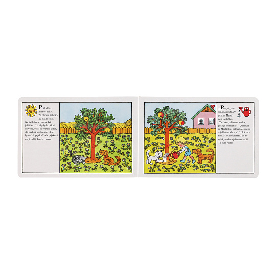 Známé leporelo s kratičkým příběhem o Martínkovi a jabloňce, o tom, jak se v průběhu jednoho roku strom mění a co všechno se s ním děje. Rozměr knihy: 24 x 16 cm Vhodně pro děti od 3 let