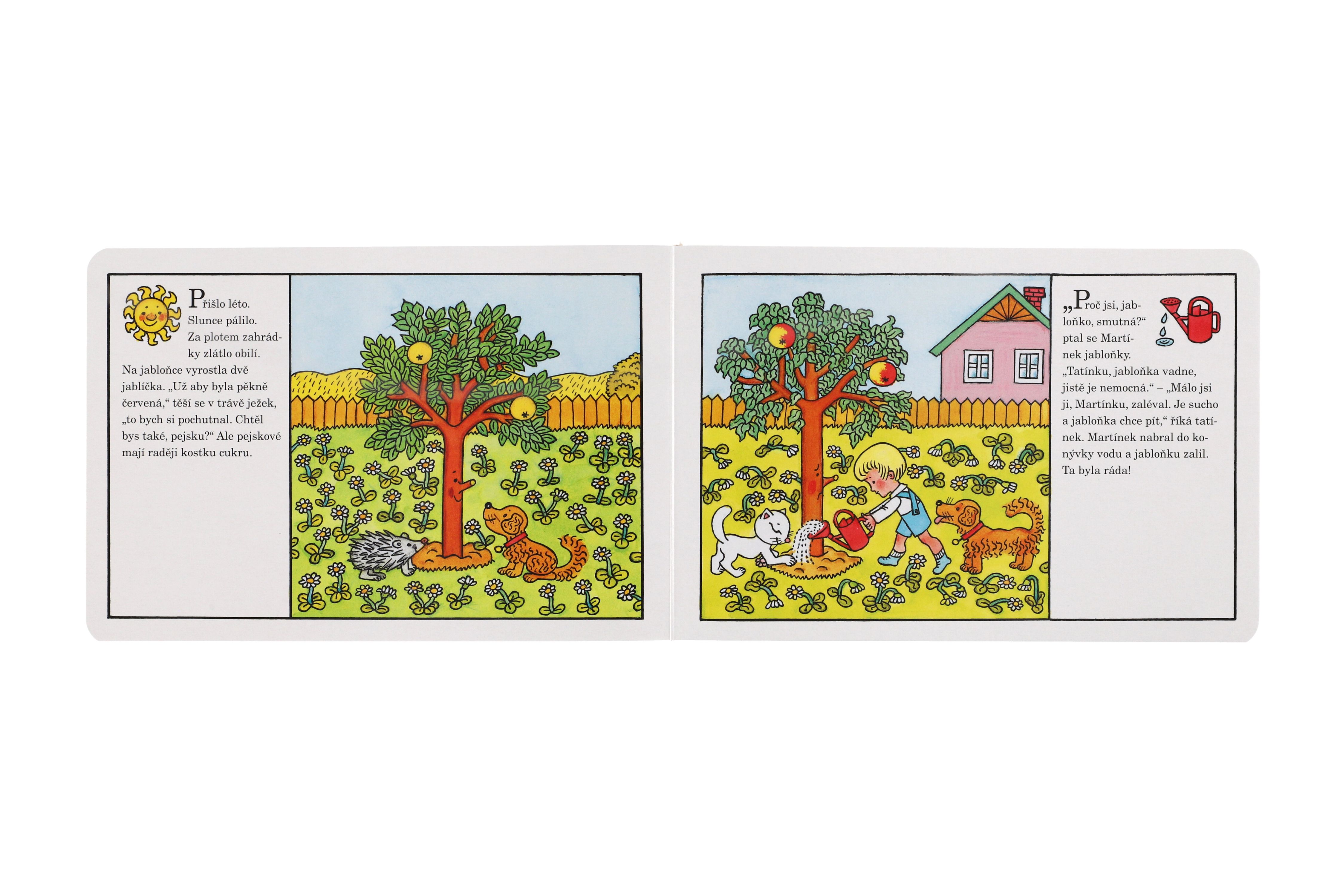 Známé leporelo s kratičkým příběhem o Martínkovi a jabloňce, o tom, jak se v průběhu jednoho roku strom mění a co všechno se s ním děje. Rozměr knihy: 24 x 16 cm Vhodně pro děti od 3 let