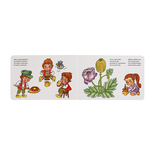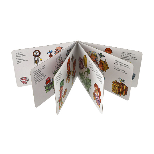 Leporelo oblíbených lidových říkadel pro nejmenší s působivými obrázky Heleny Zmatlíkové jistě potěší malé i velké. Určitě si rádi připomenete a své děti naučíte Kolo, kolo mlýnský nebo Šiju boty do roboty. Výrazná rytmická říkadla jsou snadno zapamatovatelná a dítě si bude při jejich opakování rozvíjet paměť i slovní zásobu. Rozměr knížky: 24 x 16 cm Vhodné pro děti od 2 let