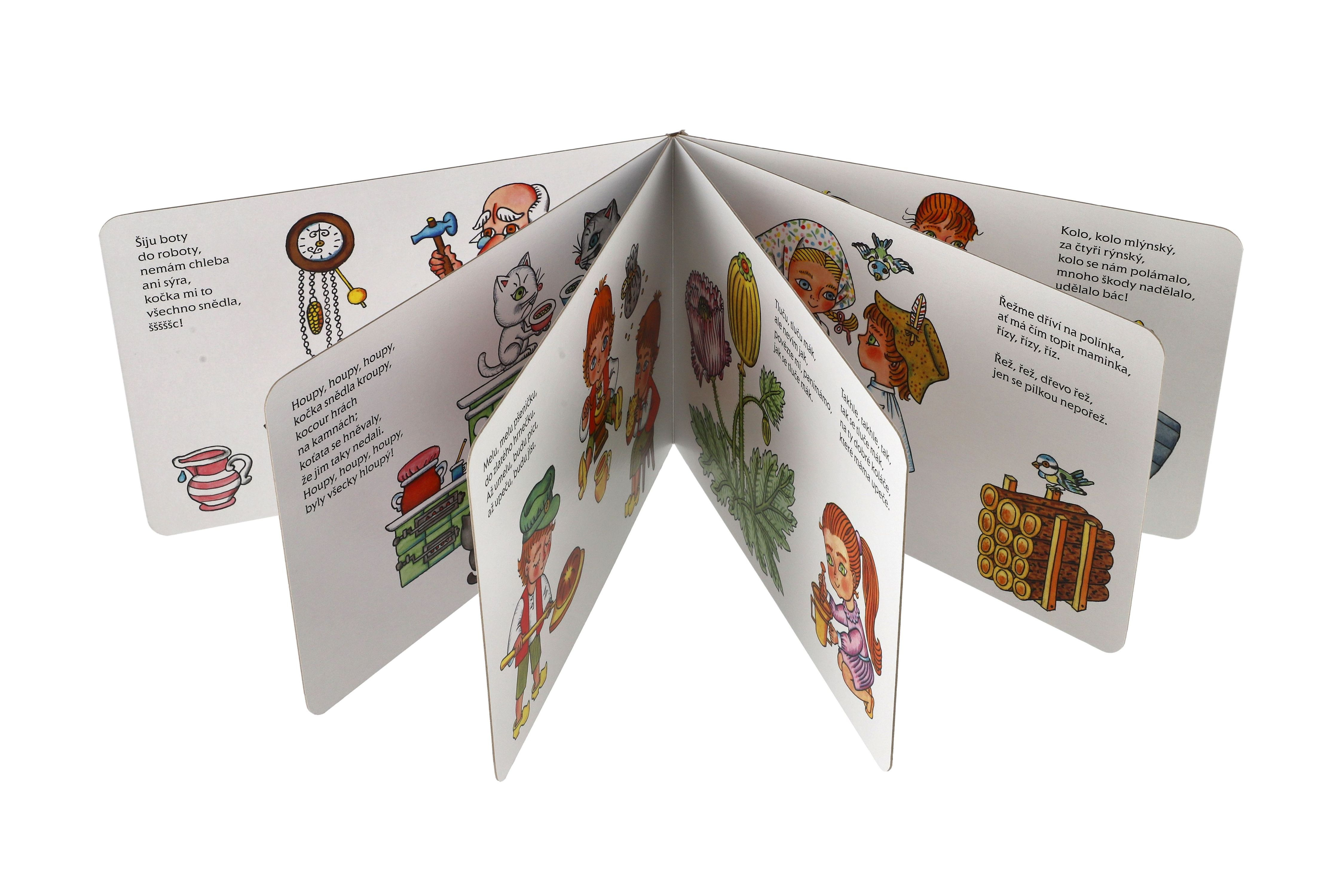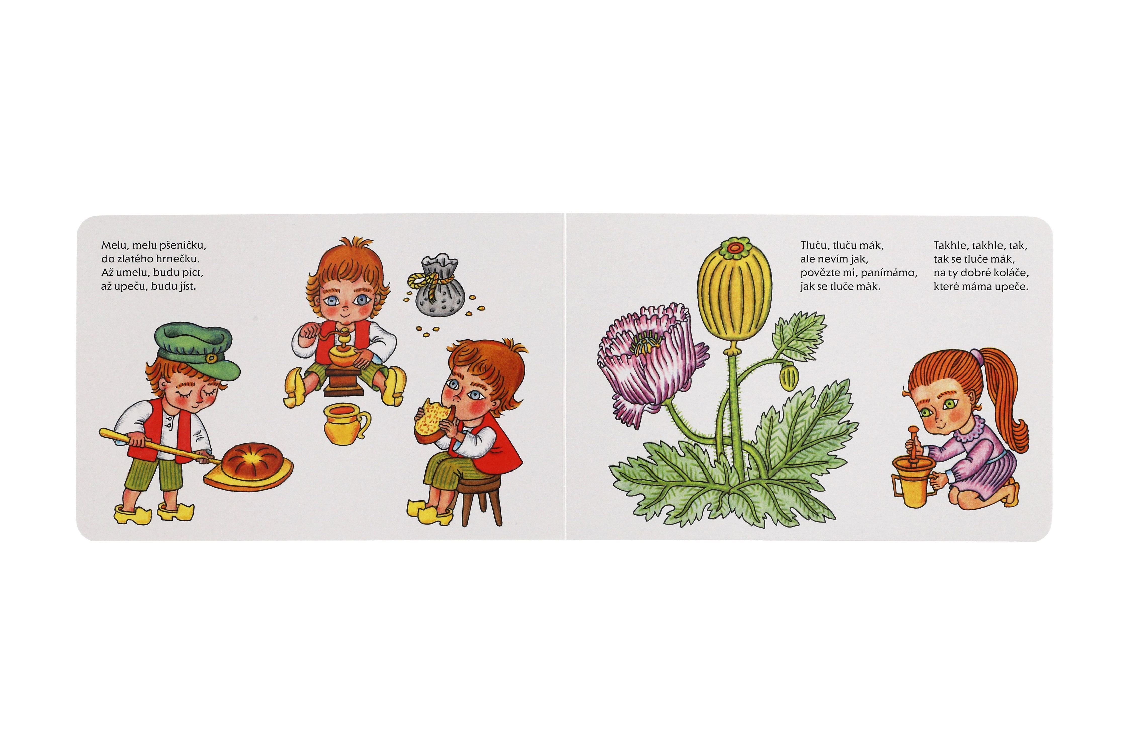 Leporelo oblíbených lidových říkadel pro nejmenší s působivými obrázky Heleny Zmatlíkové jistě potěší malé i velké. Určitě si rádi připomenete a své děti naučíte Kolo, kolo mlýnský nebo Šiju boty do roboty. Výrazná rytmická říkadla jsou snadno zapamatovatelná a dítě si bude při jejich opakování rozvíjet paměť i slovní zásobu. Rozměr knížky: 24 x 16 cm Vhodné pro děti od 2 let