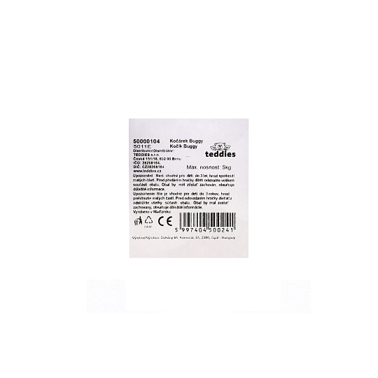 Design kočárku s jednorožcem reaguje na aktuální módní trend. Jednorožce holčičky prostě milují! Tento kočárek je doporučen pro holčičky, které si rády hrají a vžívají se do role dospělých maminek. Hra podporuje představivost, rozvíjí sociální cítění, pamět a hrubou motoriku. Kočárek pro panenky je vyroben z kombinace materiálů: látka, kov a plast. Jeho montáž je jednoduchá, bez šroubování. Návod k montáži naleznete uvnitř výrobku. Součástí výrobku je přenosná korbička na miminko, síťovaný košík jako úložný prostor pod kočárek a látková taška na přední rukojeť. Rukojeť, opěrátko kočárku i jeho část pod nohami panenky je polohovatelná, což umožnuje vytvořit z hlubokého kočáru pro miminko sportovní verzi pro batole. Určeno pro panenky max. délky 38 cm. | Celková délka: 66cm, výška: 64cm, šířka kočárku: 38 cm, rozchod kol: 33cm | Rozměry vyjímatelné korbičky: délka 40cm, šířka: 20cm | Rukojeť nastavitelná: 31 -55cm | Věk : 3+