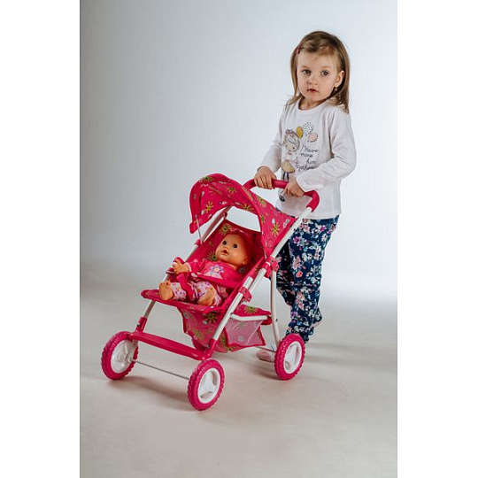Teddies Kočárek pro panenky sportovní se stříškou kov/plast 58x36x62,5cm v krabici
