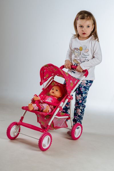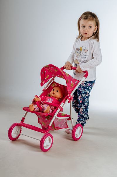 Teddies Kočárek pro panenky sportovní se stříškou kov/plast 58x36x62,5cm v krabici