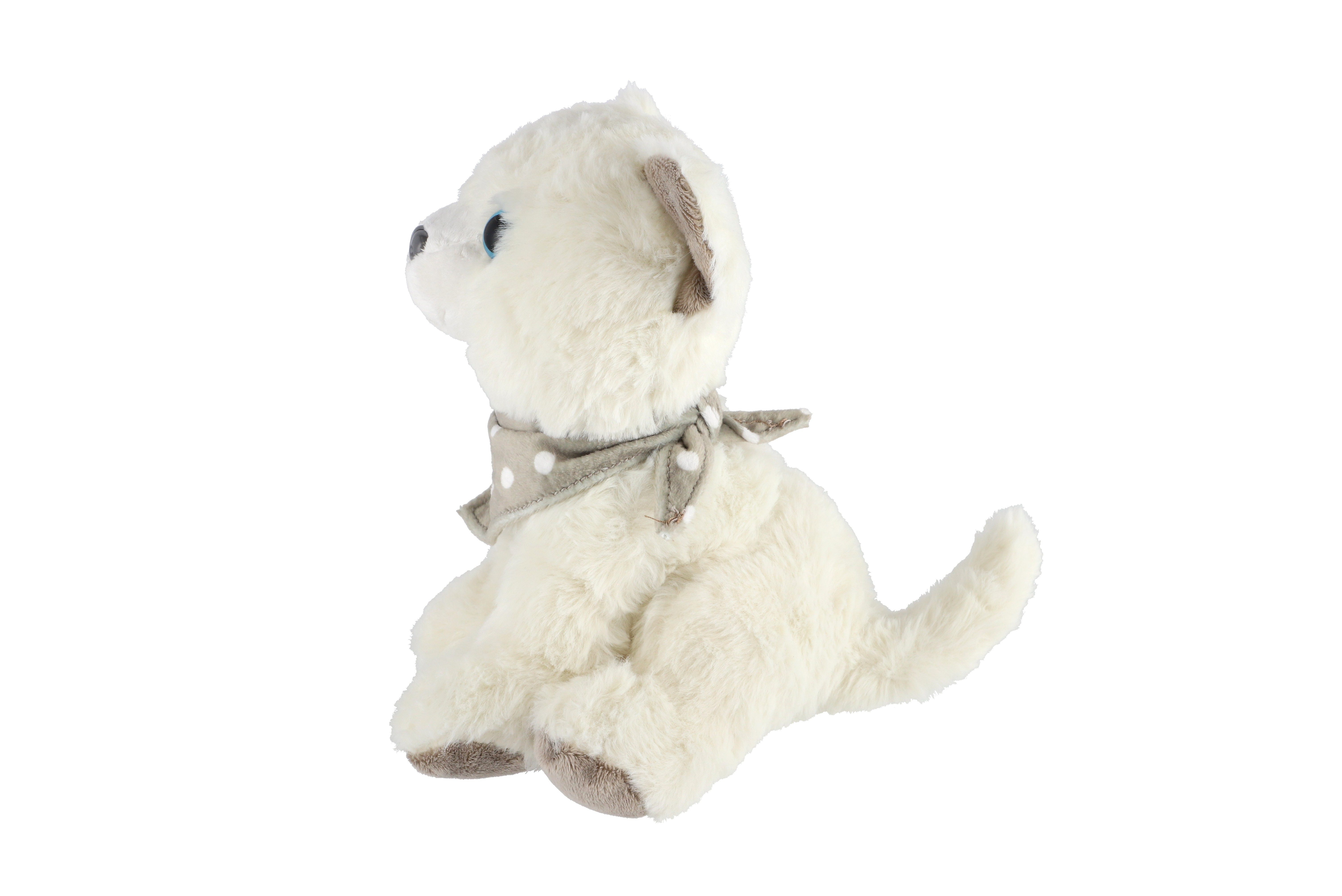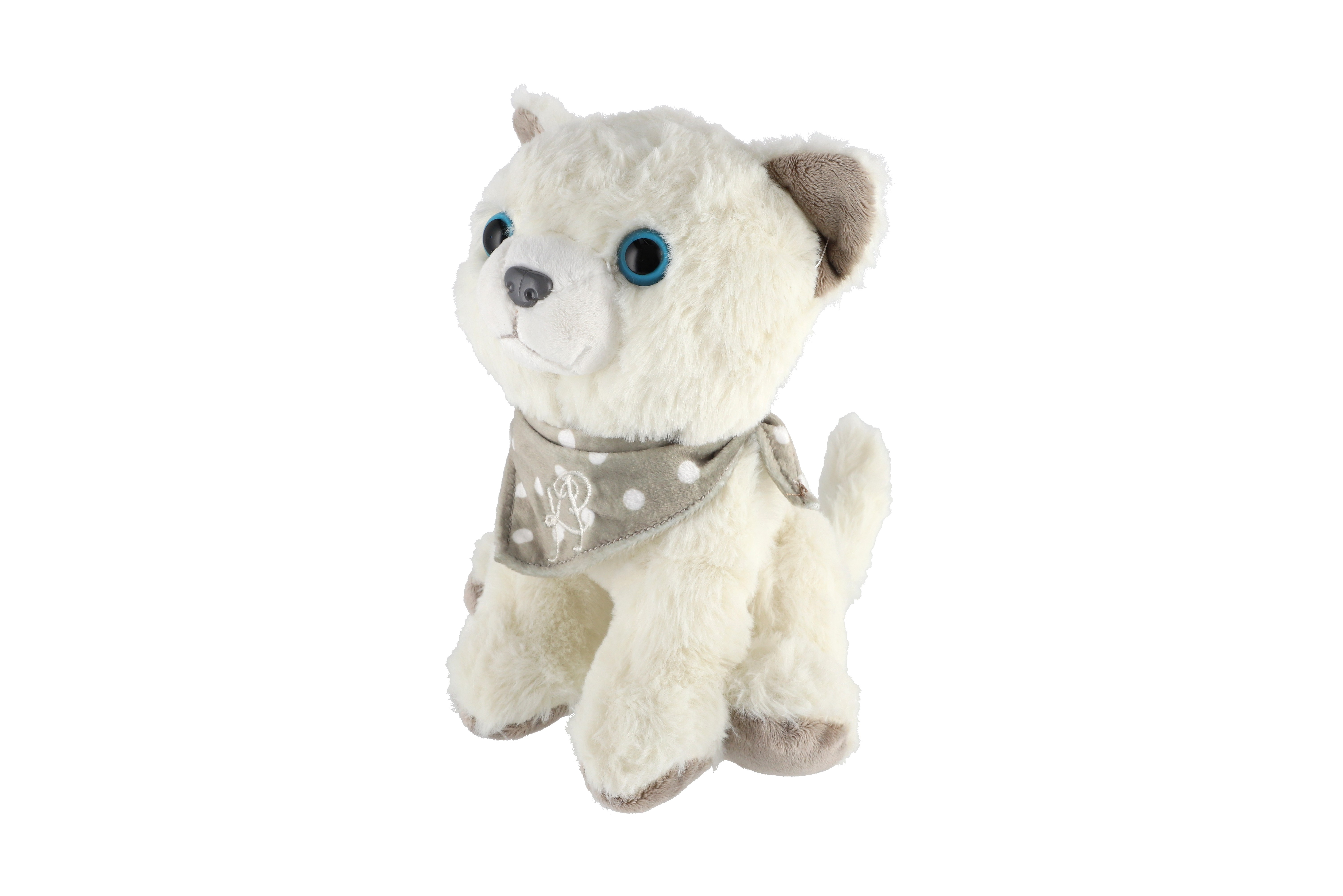 Roztomilá plyšová kočička s měkkou srstí a stylovým šátkem je ideální mazlíček pro malé i velké milovníky zvířátek. Ideální společník na hraní, mazlení i usínání! Velikost: 22 cm Vhodné pro děti od narození