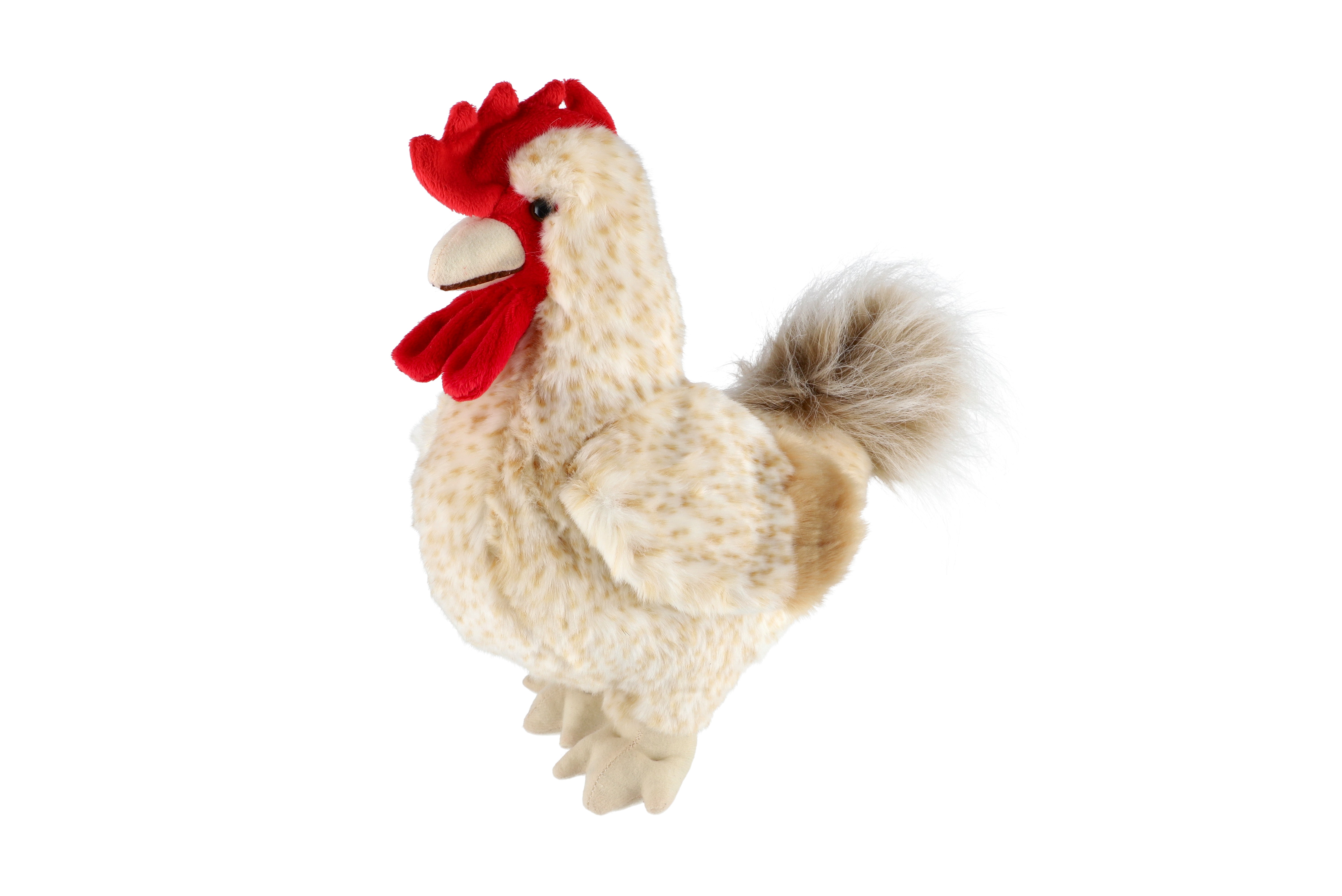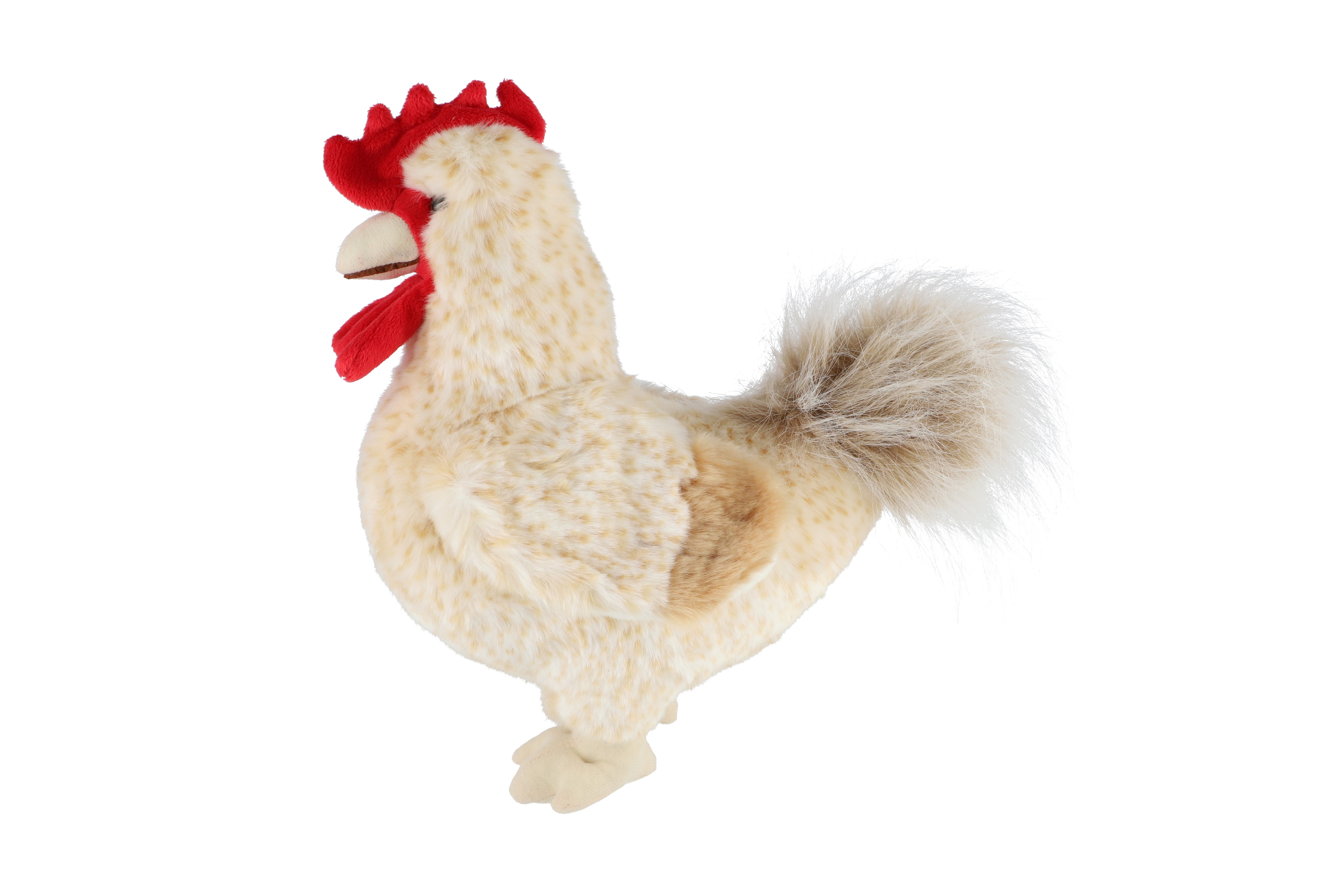 Hrdý plyšový kohout přichází rozzářit každou dětskou sbírku! Se svým barevným peřím, měkkým tělíčkem a výrazným hřebínkem si okamžitě získá pozornost. Skvělý na hraní, mazlení i jako originální dekorace do pokojíčku s venkovskou atmosférou. Velikost: 30 cm Vhodné pro děti od narození