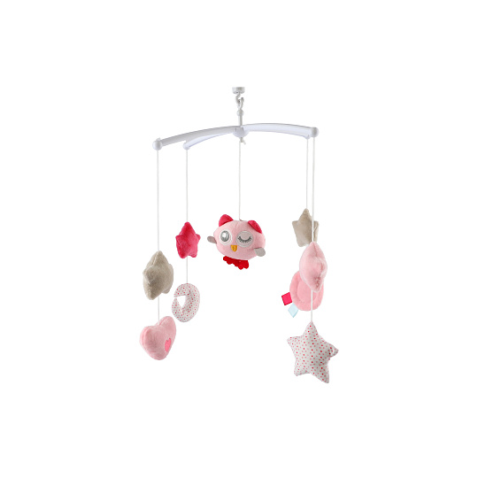 Kolotoč se sovičkou nad postýlku plast s natahovacím hrajícím strojkem růžový v krabici 19x33x5,5cm