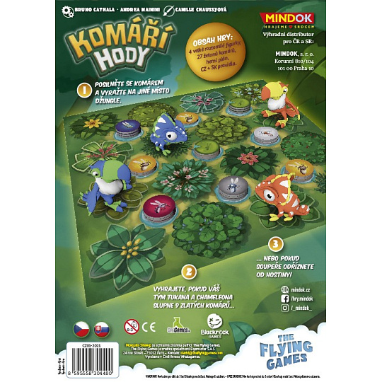 V temné džungli, v té zrádné džungli, tam pták komáry jíííí… Ve hře Komáří hody se každý ze dvou hráčů chopí jednoho loveckého týmu, sestávajícího z tukana a chameleona, a vydají se nachytat si z jezírek lahodné komáry. Ti největší fajnšmekři si pochutnají na vyhlášené delikatese: zlatých komárech.