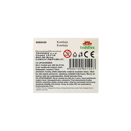 Detailně propracovaný kombajn v šedo-zeleném barevném provedení s velkou přední radlicí je věrnou kopií opravdové zemědělské techniky. Stroj disponuje bočním ramenem na výsyp a odnímatelným přívěsem. Je na volný chod. Rozměry balení 27 x 12,5 x 6 cm. Vhodné pro děti od 3 let.