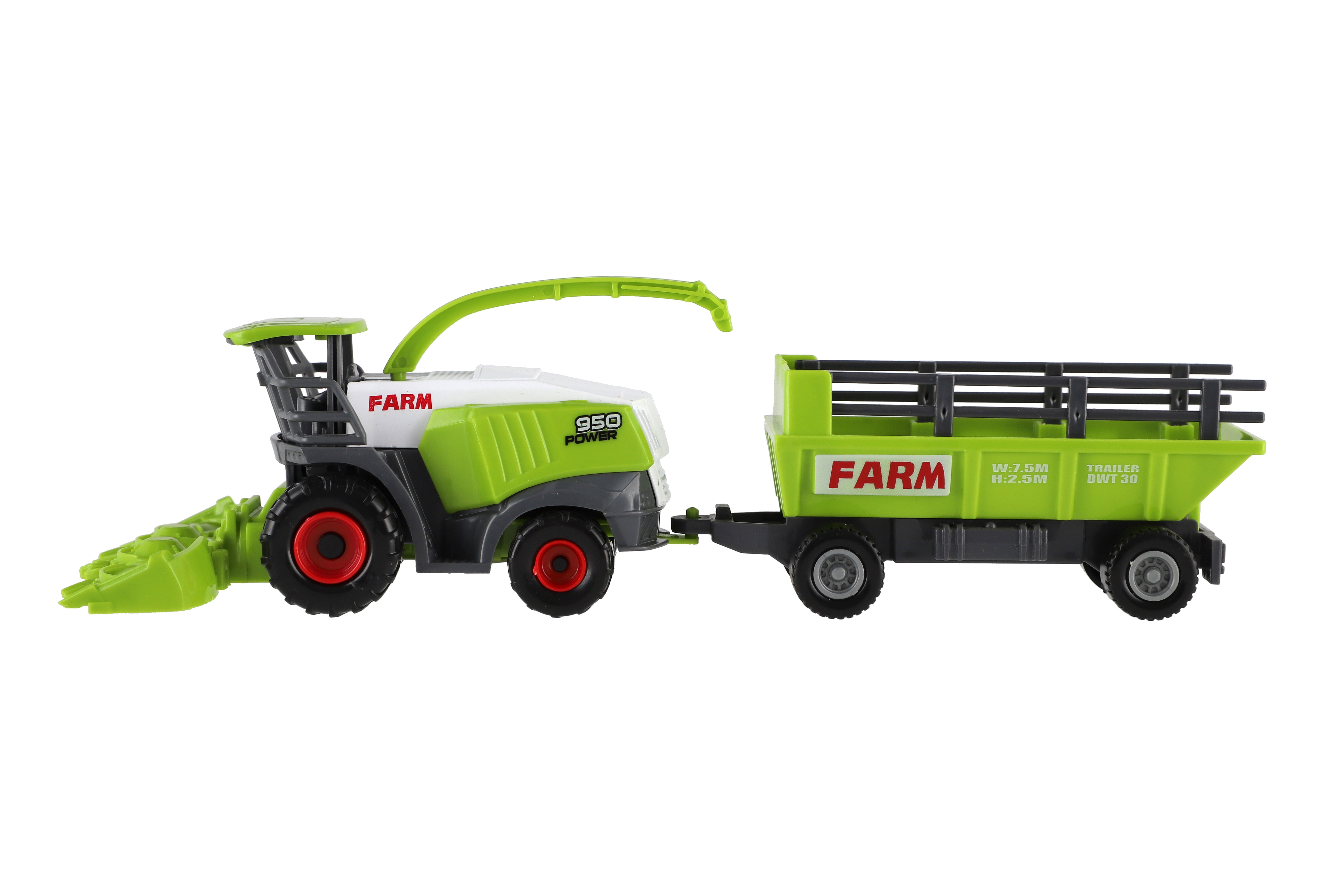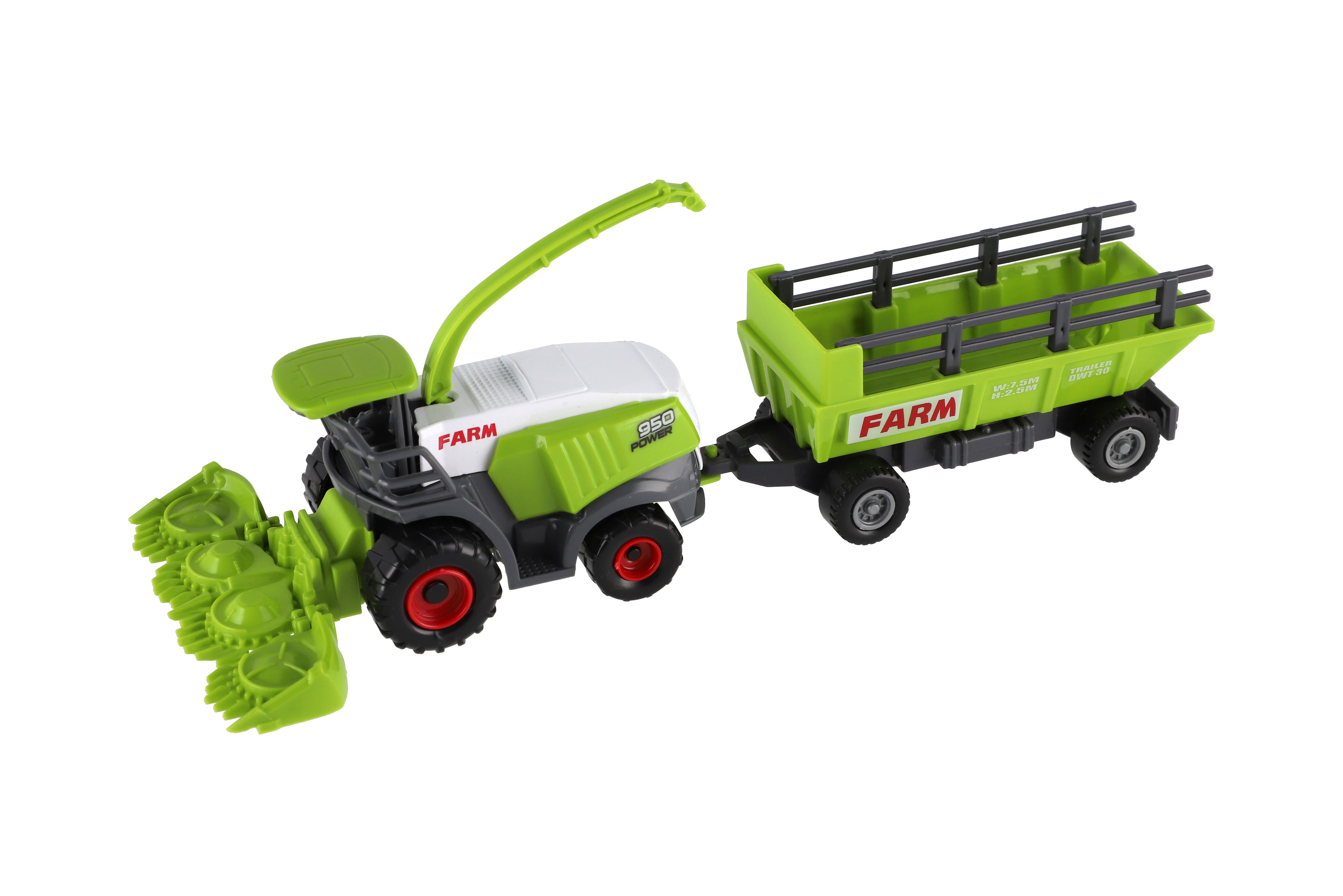 Kombajn/řezačka s vlekem plast 22cm na volný chod v krabici 27x12,5x6cm