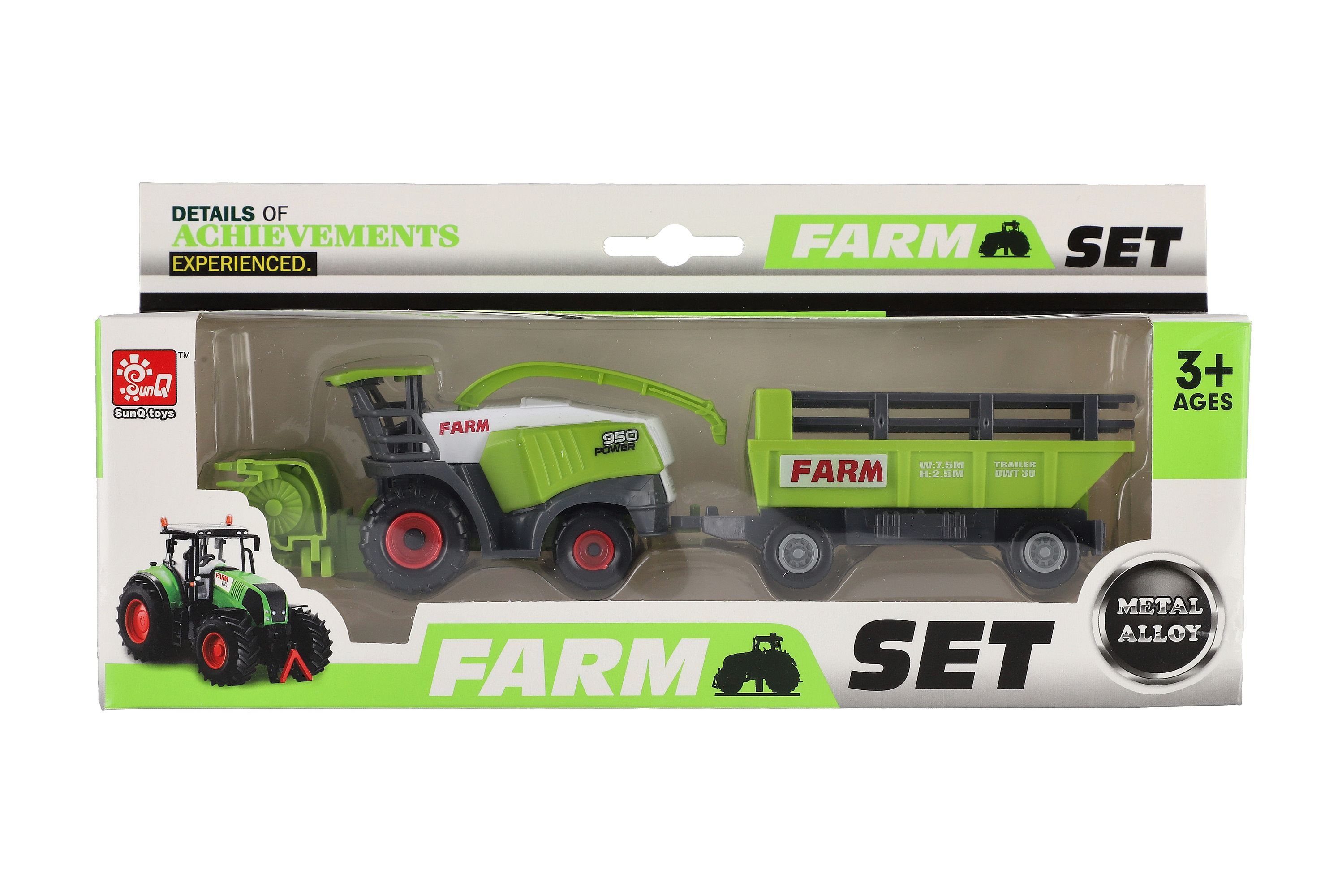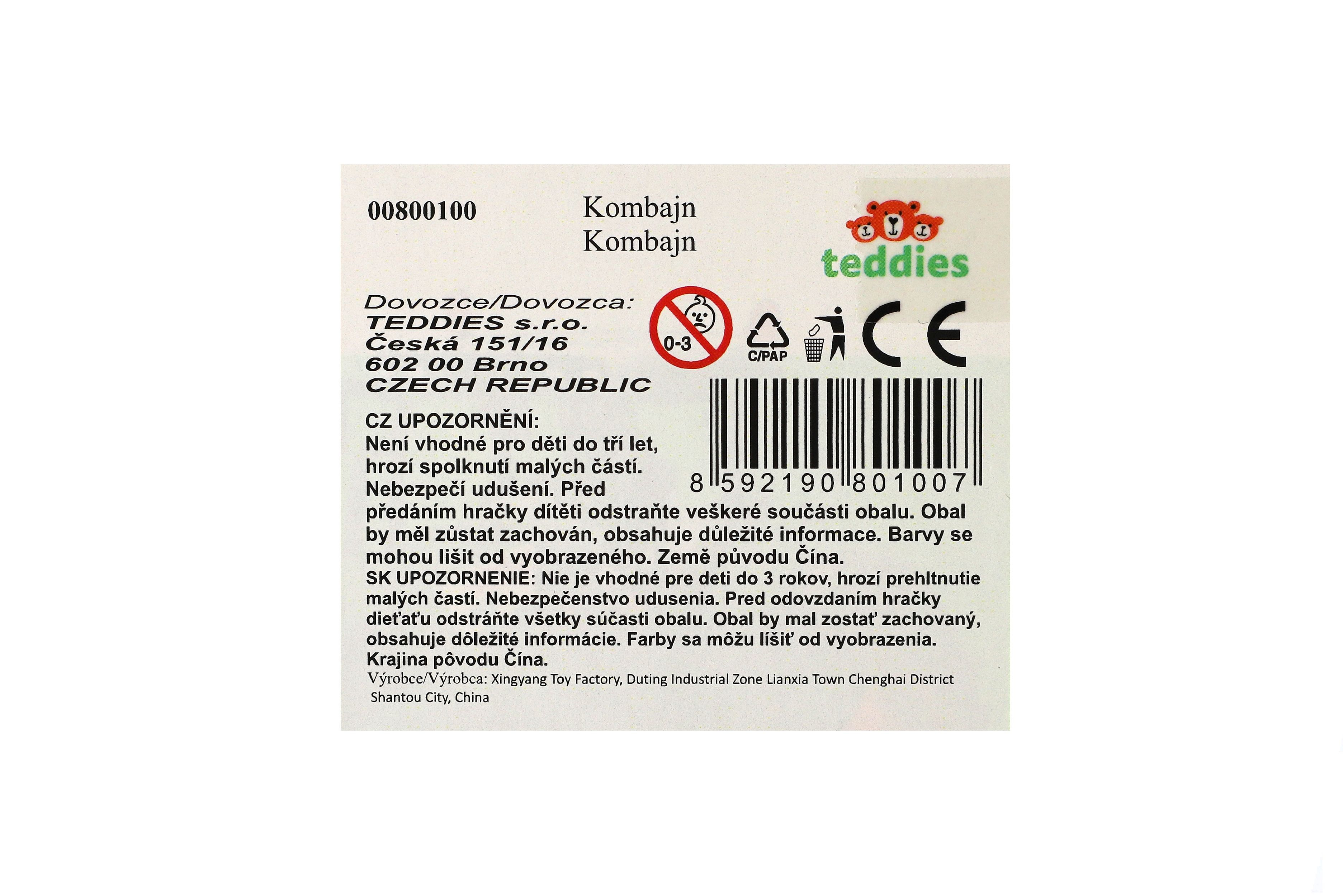 Detailně propracovaný kombajn v šedo-zeleném barevném provedení s velkou přední radlicí je věrnou kopií opravdové zemědělské techniky. Stroj disponuje bočním ramenem na výsyp a odnímatelným přívěsem. Je na volný chod. Rozměry balení 27 x 12,5 x 6 cm. Vhodné pro děti od 3 let.