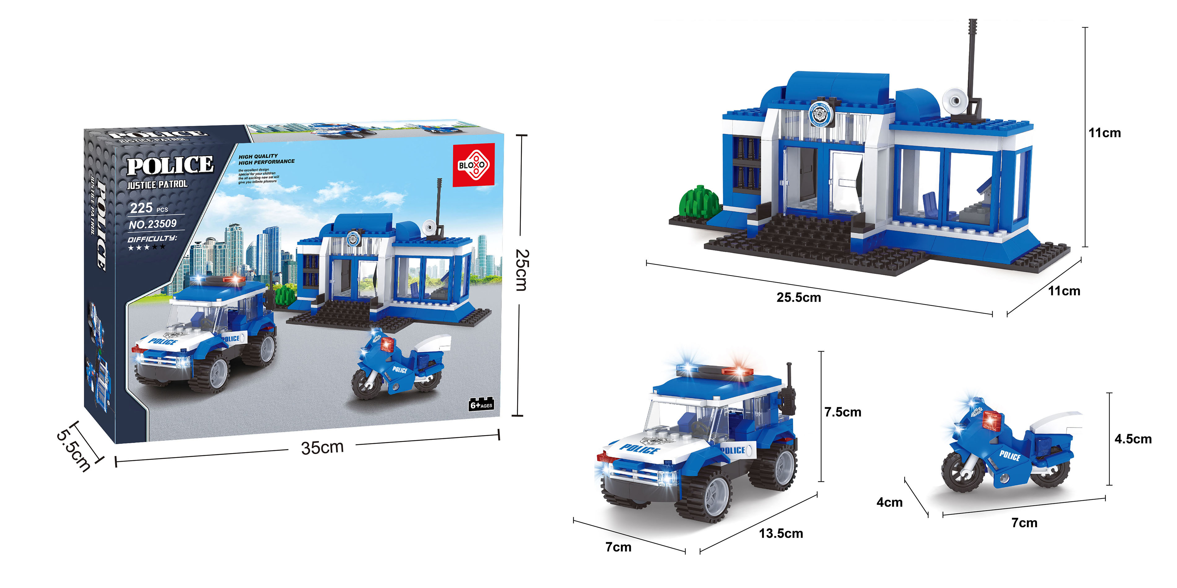 Vydejte se na záchrannou misi s kreativní stavebnicí BLOXO Policie stanice! Tato stavebnice obsahuje 194 dílků, které dětem umožní postavit vlastní policejní stanici a sestavit tak vše potřebné pro policejní základnu! Díky kompatibilitě s jinými stavebnicemi nabízí neomezené možnosti kombinací a rozšiřování. Stavebnice rozvíjí jemnou motoriku, logické myšlení a kreativitu.