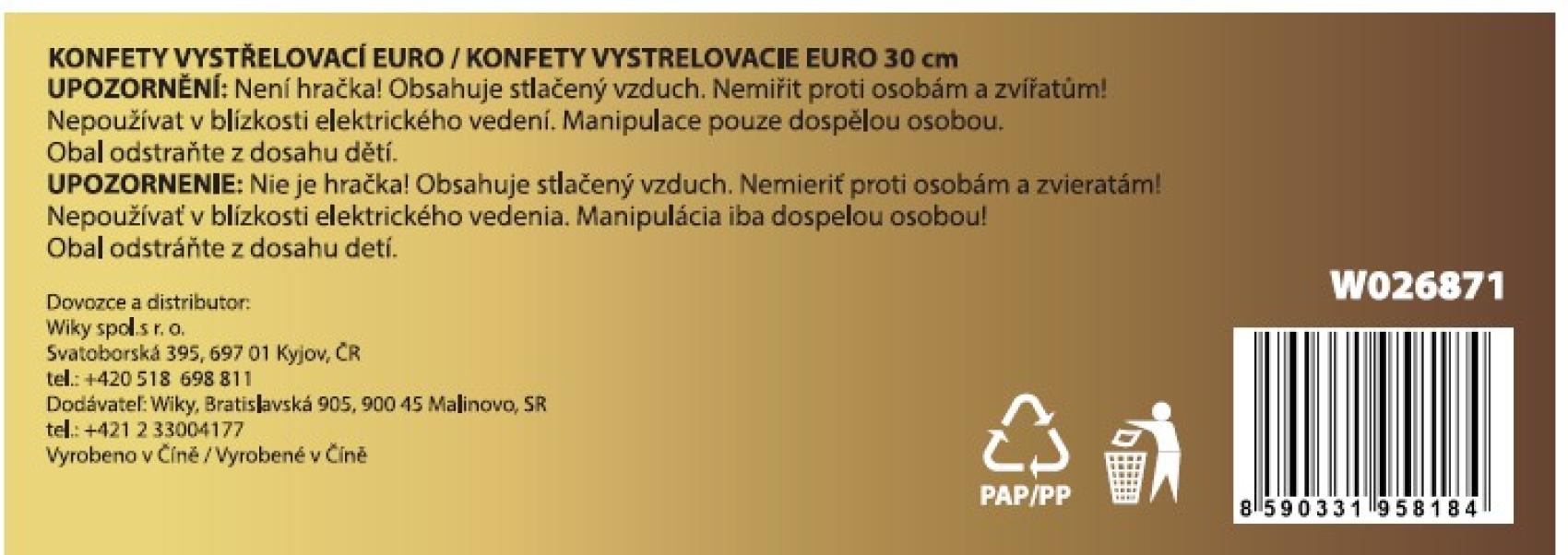 Konfety vystřelovací EURO 30 cm.