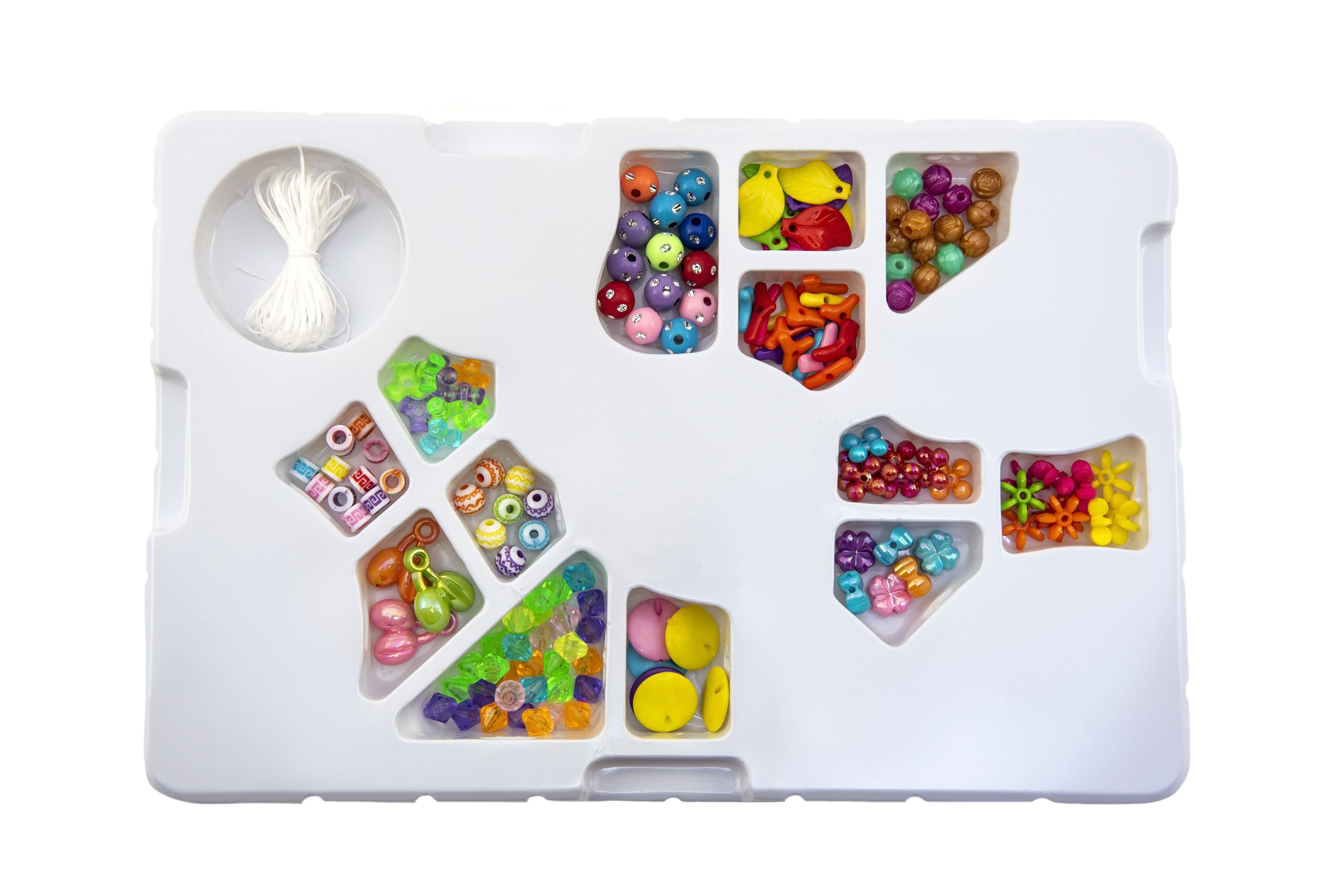 Korálky plastové barevné se šňůrkou v krabici 26x17x2cm