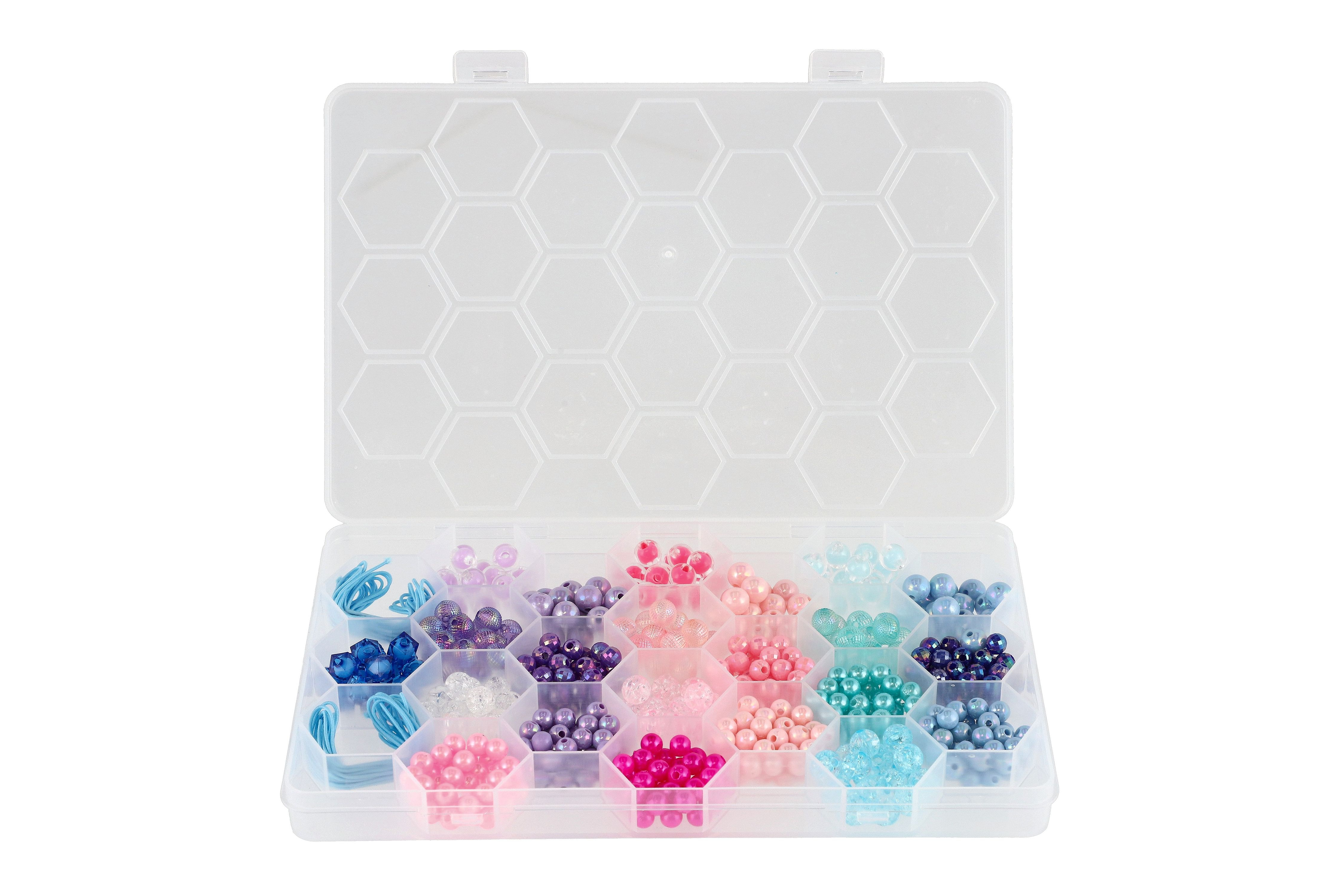 Korálky plastové barevné se šňůrkou v plastové krabičce 20x16,5cm