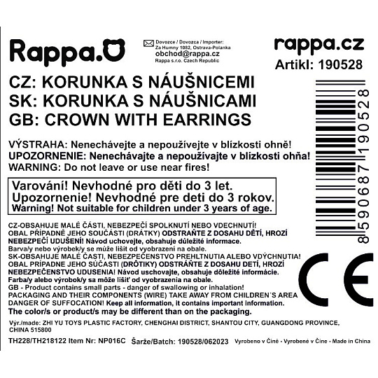 Krásná korunka stříbrné barvy s náušnicemi pro všechny malé princezny. Oba doplňky jsou zdobeny nepřehlédnutelnými růžovými ozdobnými kamínky. Perfektní sada ke kostýmu! Doporučeno pro děvčata od 3 let.