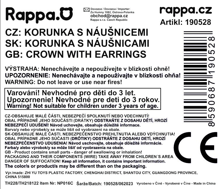 Krásná korunka stříbrné barvy s náušnicemi pro všechny malé princezny. Oba doplňky jsou zdobeny nepřehlédnutelnými růžovými ozdobnými kamínky. Perfektní sada ke kostýmu! Doporučeno pro děvčata od 3 let.