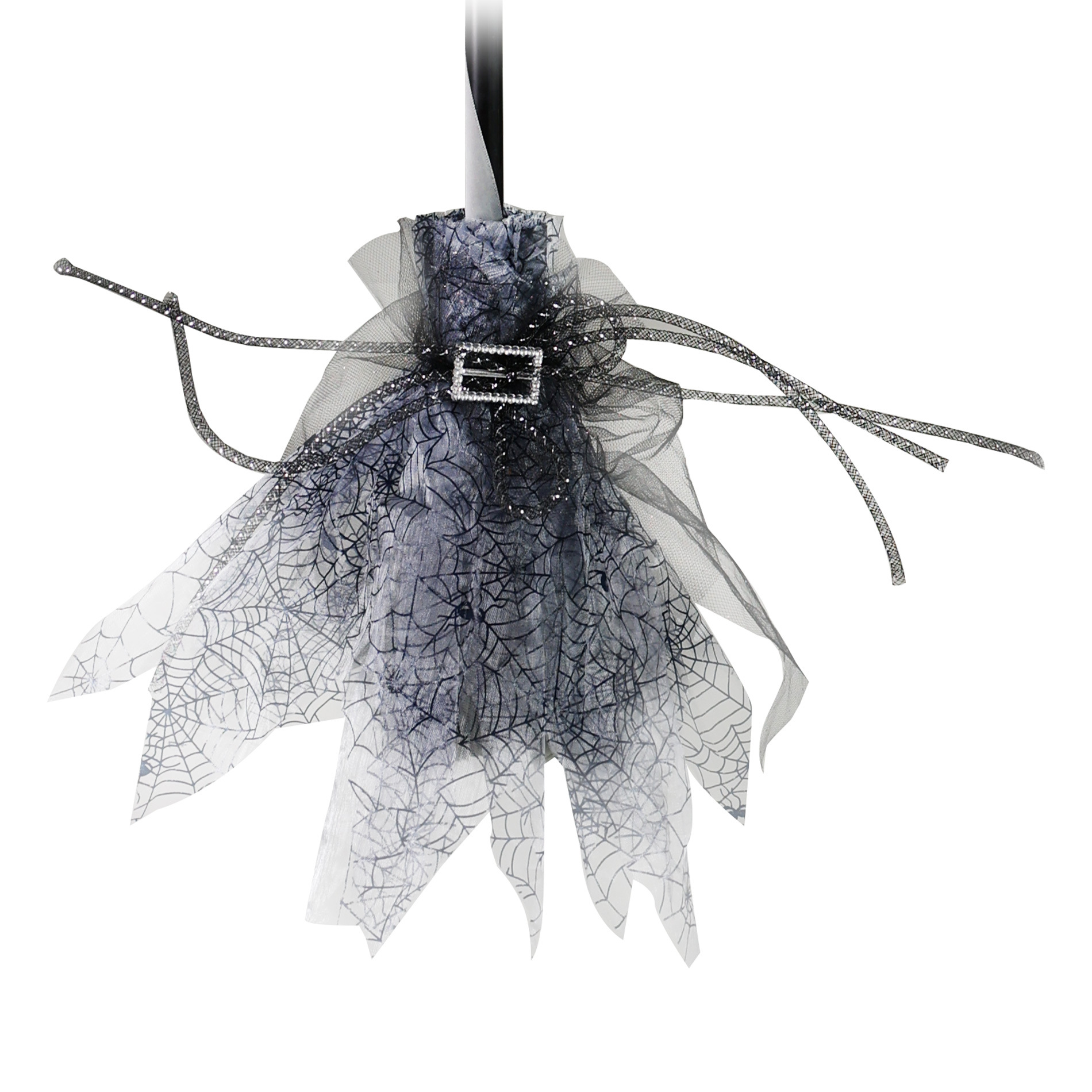 Čarodějnické koště je zcela nezbytný dopravní prostředek, který nesmí chybět ve výbavě žádné čarodějnice! Toto roztomilé košťátko zdobené stříbrnou sponou potěší každou malou dívku, která chce uspět na čarodějnické párty nebo na karnevale. Barva černo-šedá.