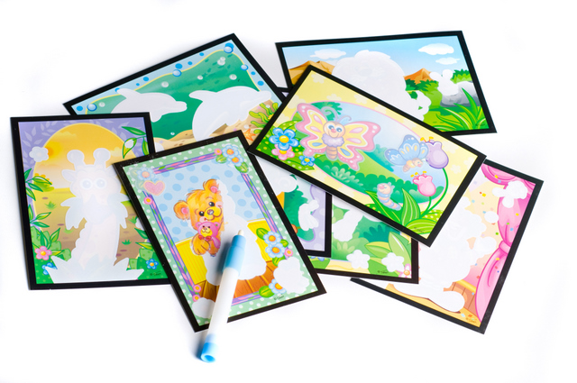 Sada obsahuje 8 kouzelných obrázků. Do tužky nalijte vodu a malujete s ní na obrázek, obrázek se po použití vody objeví a až voda zaschne -cca 3 minuty zase zmizí a můžete malovat znovu. Menší děti mohou používat obyčejný štětec a kelímek s vodou- je to pro ně opravdu zábava a pro rodiče také, protože vodou se nic neušpiní jako s barvami...Vhodné pro děti již od 3 let.