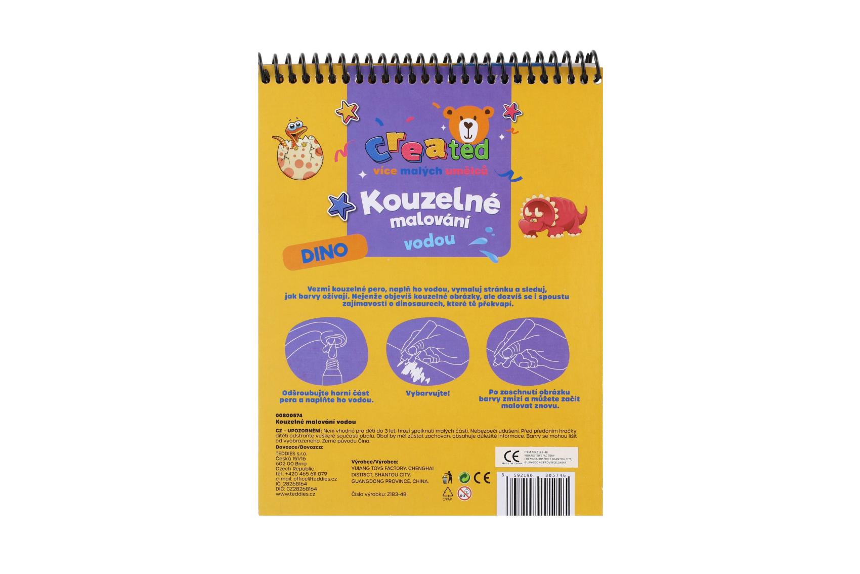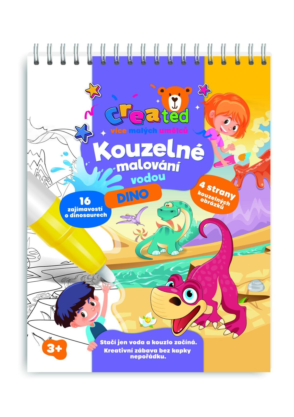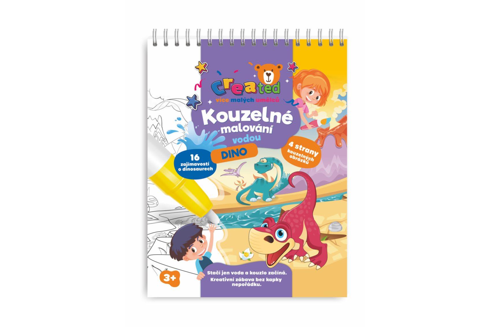Objevte zábavný způsob malování, který nevyžaduje žádné barvy ani nepořádek. Tato kouzelná knížka created – Kouzelné malování vodou s motivem dinosaurů potěší všechny malé umělce a milovníky prehistorie. Jak to funguje? Stačí naplnit přiložené pero vodou a přejíždět jím po obrázku – barvy se začnou magicky objevovat. Po zaschnutí obrázek opět zbělá a dítě může malovat znovu a znovu. Bez nepořádku, bez barev, bez stresu – jen čistá radost z tvoření. Skvělá volba na cesty, do auta nebo jako kreativní dárek. Obsahuje také 16 zajímavostí o dinosaurech.