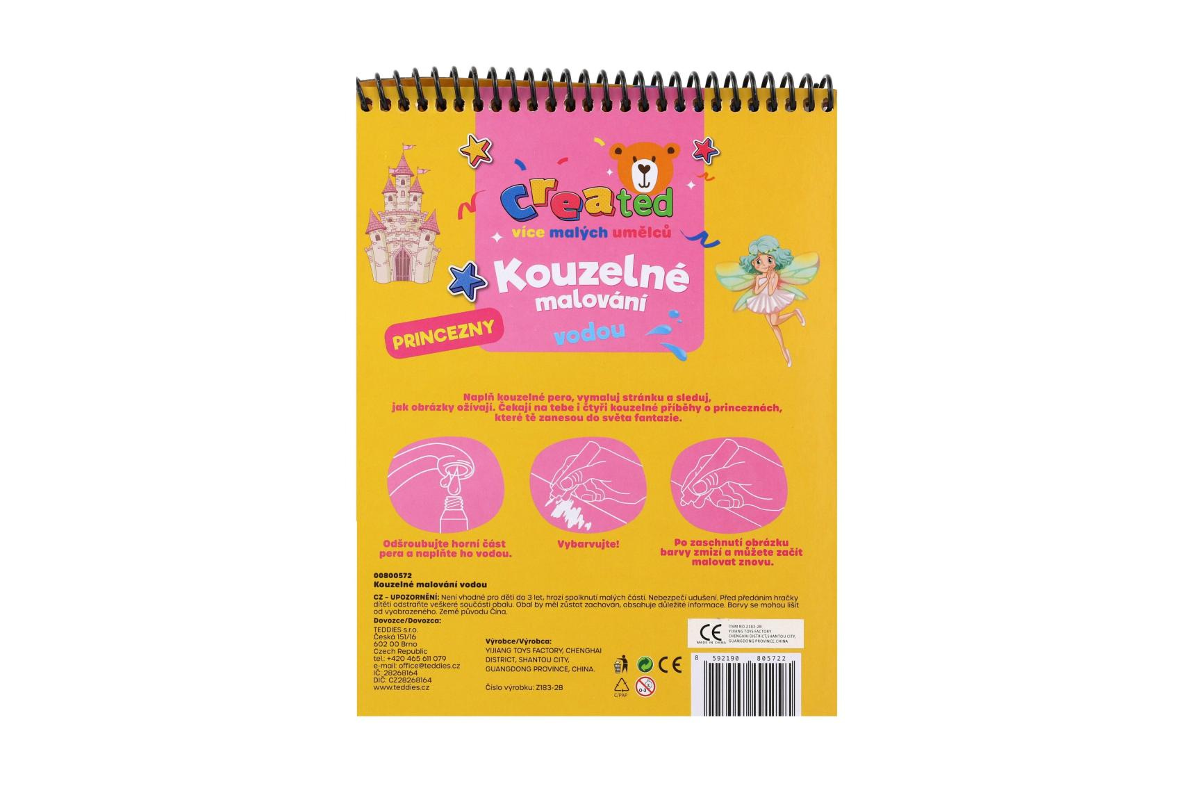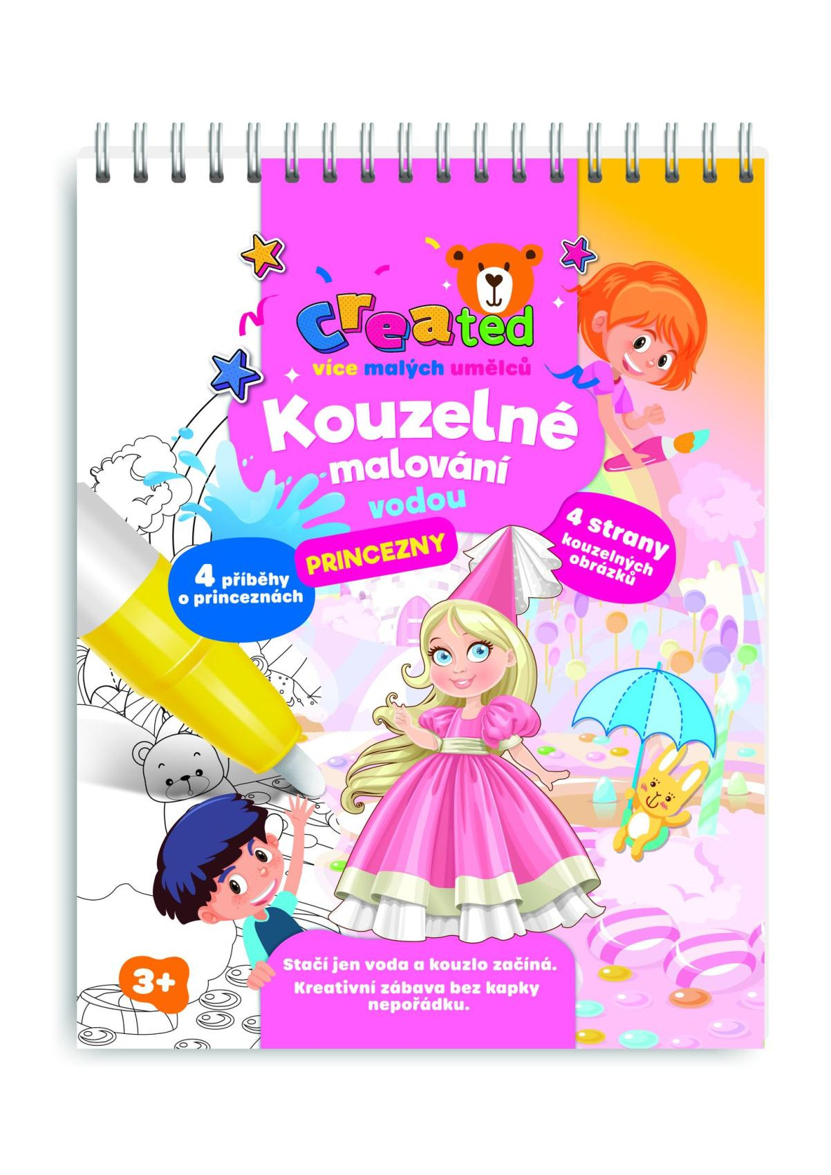 Stačí jen voda a kouzlo začíná! S tímto kouzelným blokem se děti přenesou do pohádkového světa princezen, krásných šatů a zámků. Naplňte přiloženou kouzelnou tužku vodou a sledujte, jak se obrázky samy vybarvují – bez kapky nepořádku. Po vyschnutí barvy zmizí a malování může začít znovu. Obsahuje 4 příběhy o princeznách, 4 kouzelné obrázky k vybarvování vodou a 1 kouzelnou vodní tužku.