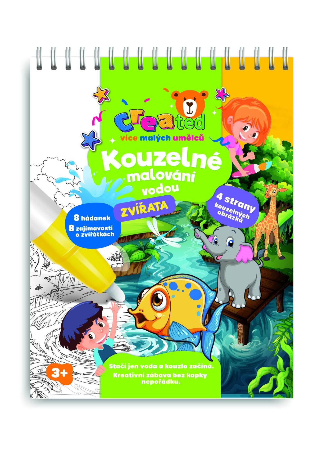 Objevte kouzelný svět malování bez nepořádku! Tento kreativní blok s motivem zvířat přináší dětem hodiny zábavy, rozvoje fantazie a poznávání přírody. Stačí naplnit kouzelnou tužku vodou a obrázky začnou ožívat barvami – jako mávnutím kouzelného proutku! Po vyschnutí obrázek opět zmizí a lze ho malovat znovu a znovu. Obsahuje 4 kouzelné obrázky k vybarvování vodou, 8 hádánek a zajímavostí o zvířatech a 1 kouzelnou vodní tužku.