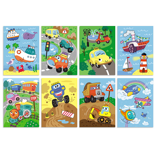 Kouzelné malování vodou Doprava omalovánky/blok 12x14cm + štětec 8 listů v krabičce