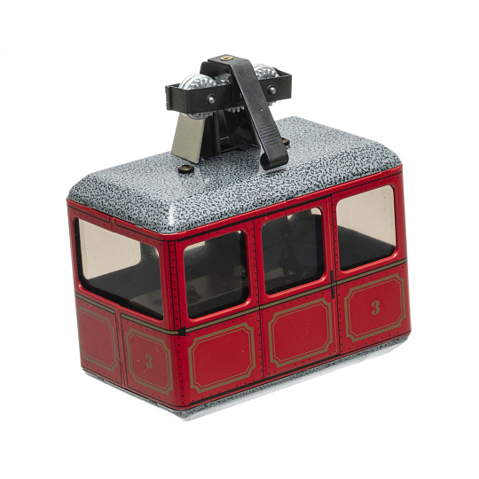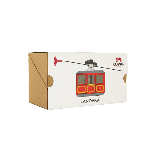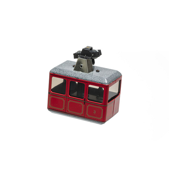 Originální hračka – model lanovky na klíček, který dokáže jezdit po provázku. Ujede asi 4 metry s maximálním převýšením 0,5 metru. Provázek je součástí balení. Pohon lanovky zajišťuje pérový strojek na klíček, který je vybaven brzdou, která spouští nebo zastavuje pohyb lanovky po provázku. Měřítko 1:43
