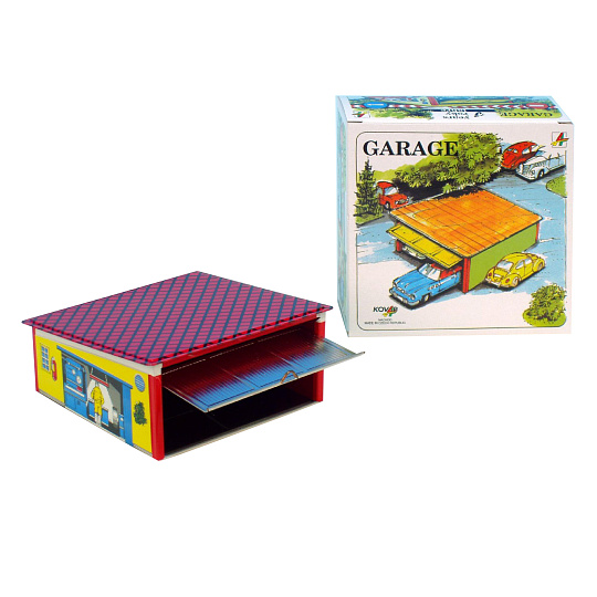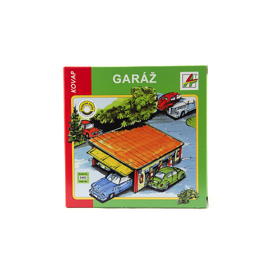 Garáž je připravena pro všechny typy malých aut Kovap.Velikost 15x16x13 cm.