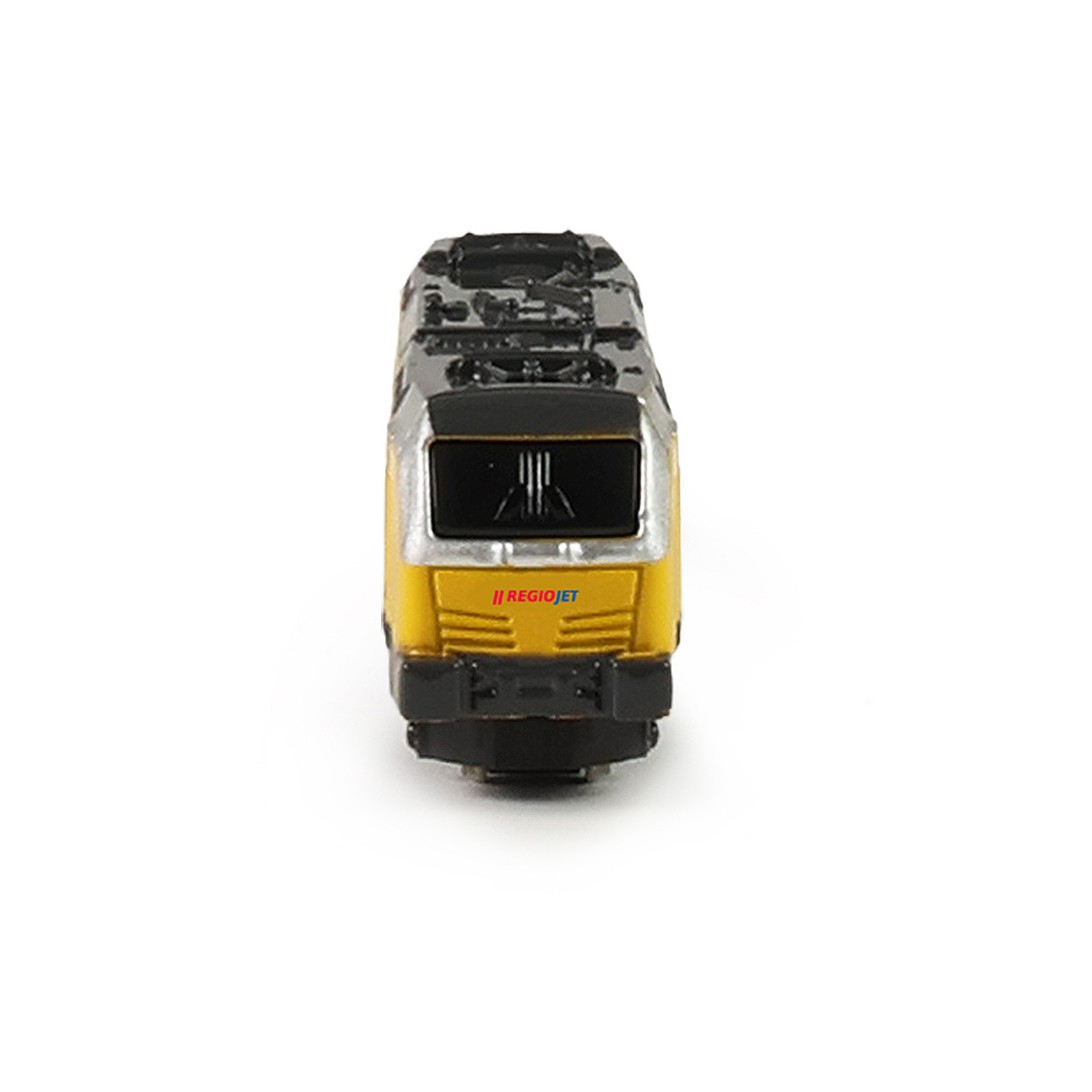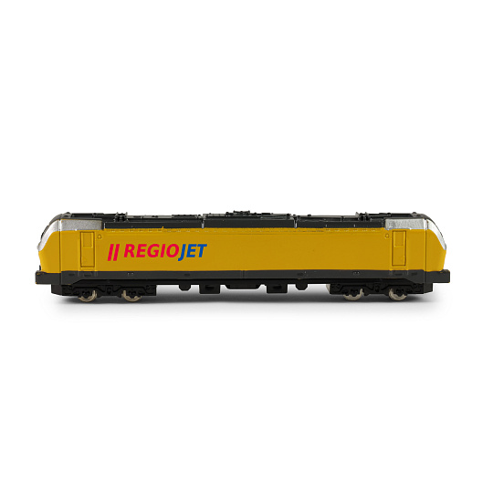 Originální 16 cm dlouhá mini kovová lokomotiva regionální společnosti RegioJet, by neměla chybět v pokojíčku žádnému fandovi vláčků! Tento úžasný kovový model lokomotivy je ideální jako dárek nebo jako sběratelský kousek! Lokomotiva jezdí na volný chod a je v měřítku 1:48.
