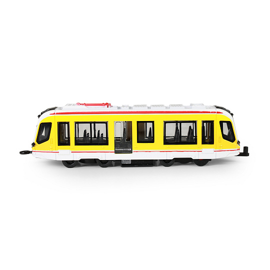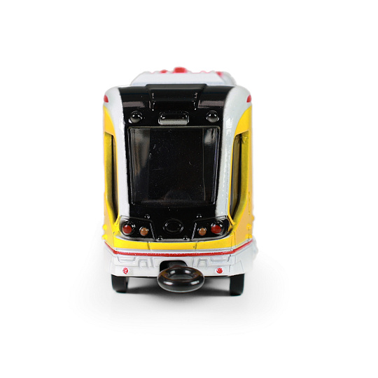 Originální kovová tramvaj žluté barvy, která jezdí na zpětný chod. Délka tramvaje je 20 cm. Dveře lze manuálně otevřít a zavřít pomocí páčky umístěné pod dveřmi vozu. Tato naše unikátní hračka je skvělým dárkem nejen pro vaše děti.