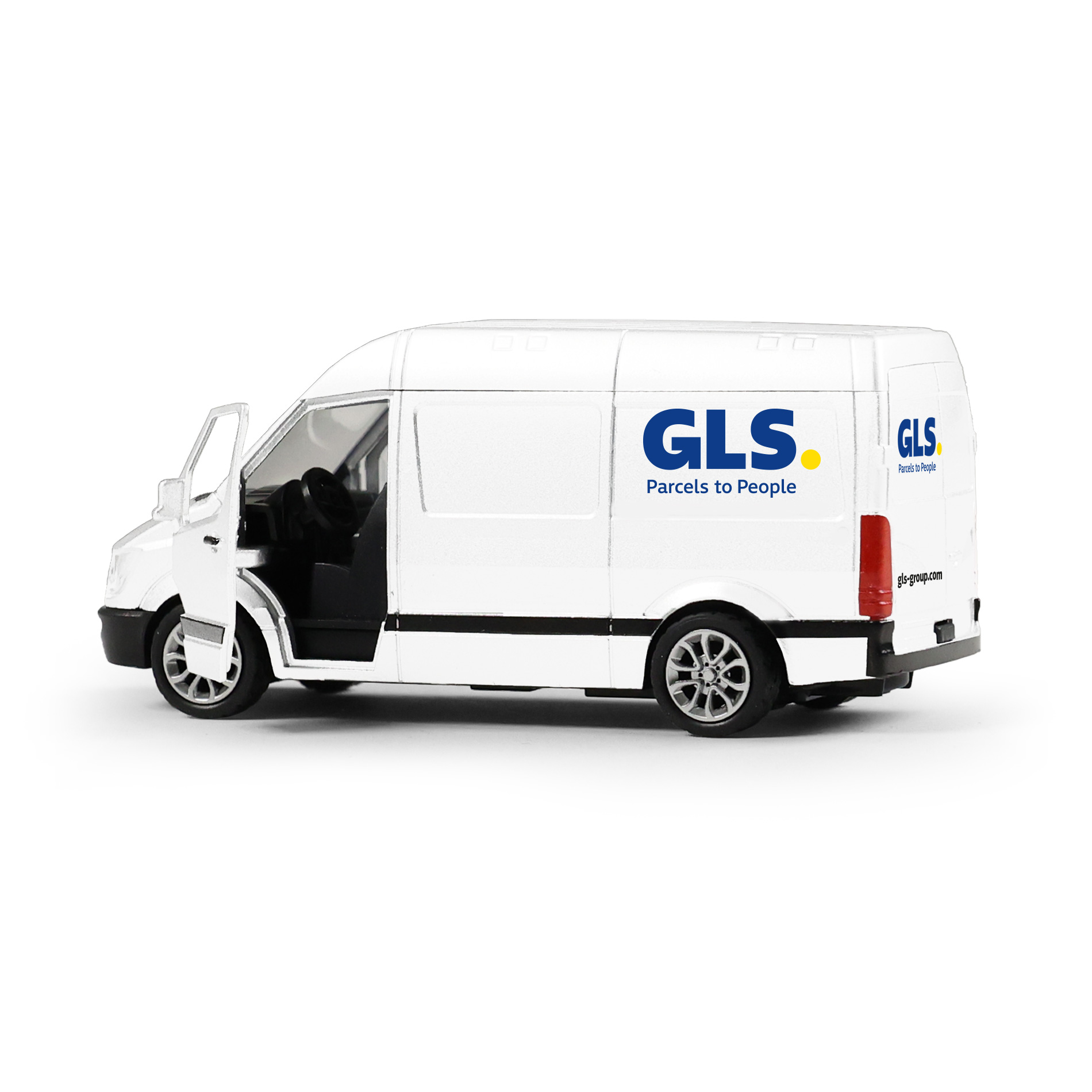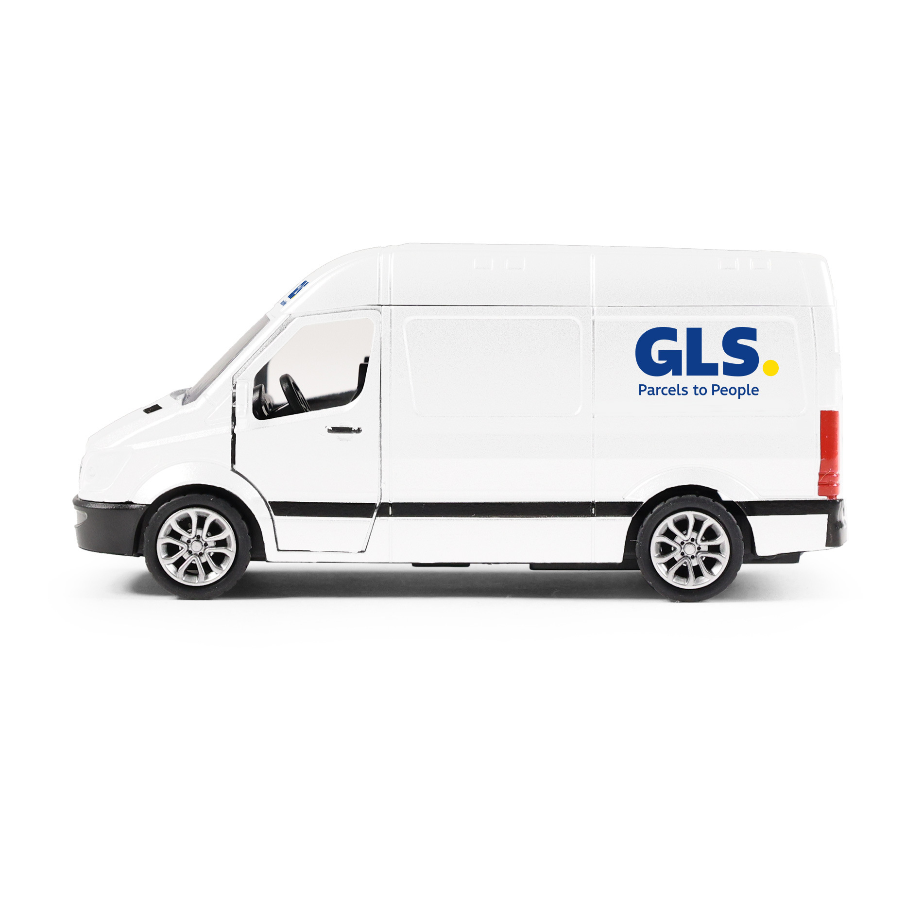 Rozšiř si svůj vozový park a pořiď si tuhle originální kovovou dodávku s logem přepravní společnosti GLS. Auto má otevírací přední dveře. Jezdí na zpětný chod a jeho délka je 12 cm.