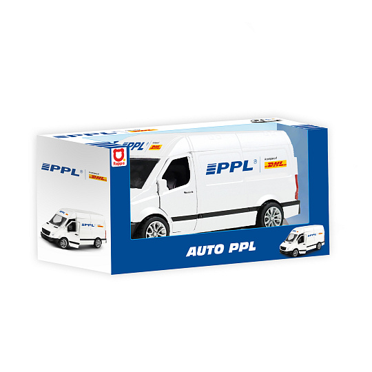 Rozšiř si svůj vozový park a pořiď si tuhle originální kovovou dodávku s logem přepravní společnosti PPL. Auto má otevírací přední dveře. Jezdí na zpětný chod a jeho délka je 12 cm.
