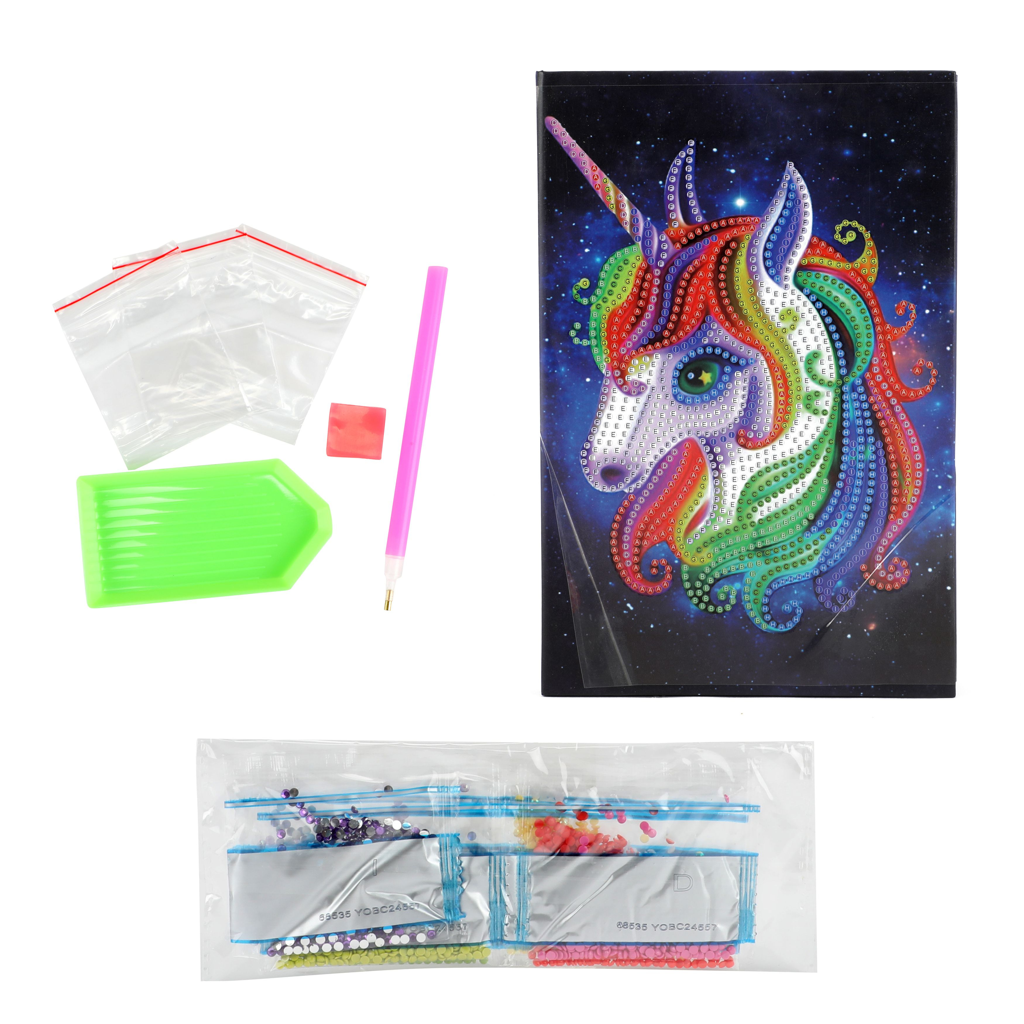 Vyrobte si ze svého deníku to nejkrásnější umělecké dílo! Pomocí lepících kamínků / "diamantů" vytvoříte originální deník, který ve Vašem okolí nikdo nemá! Obsahuje: blok, diamanty - kamínky, třídírnu na kamínky a speciální tužku na přenos kamínků. Rozměr bloku: 14,5 x 21 cm Vhodné pro děti od 5 let