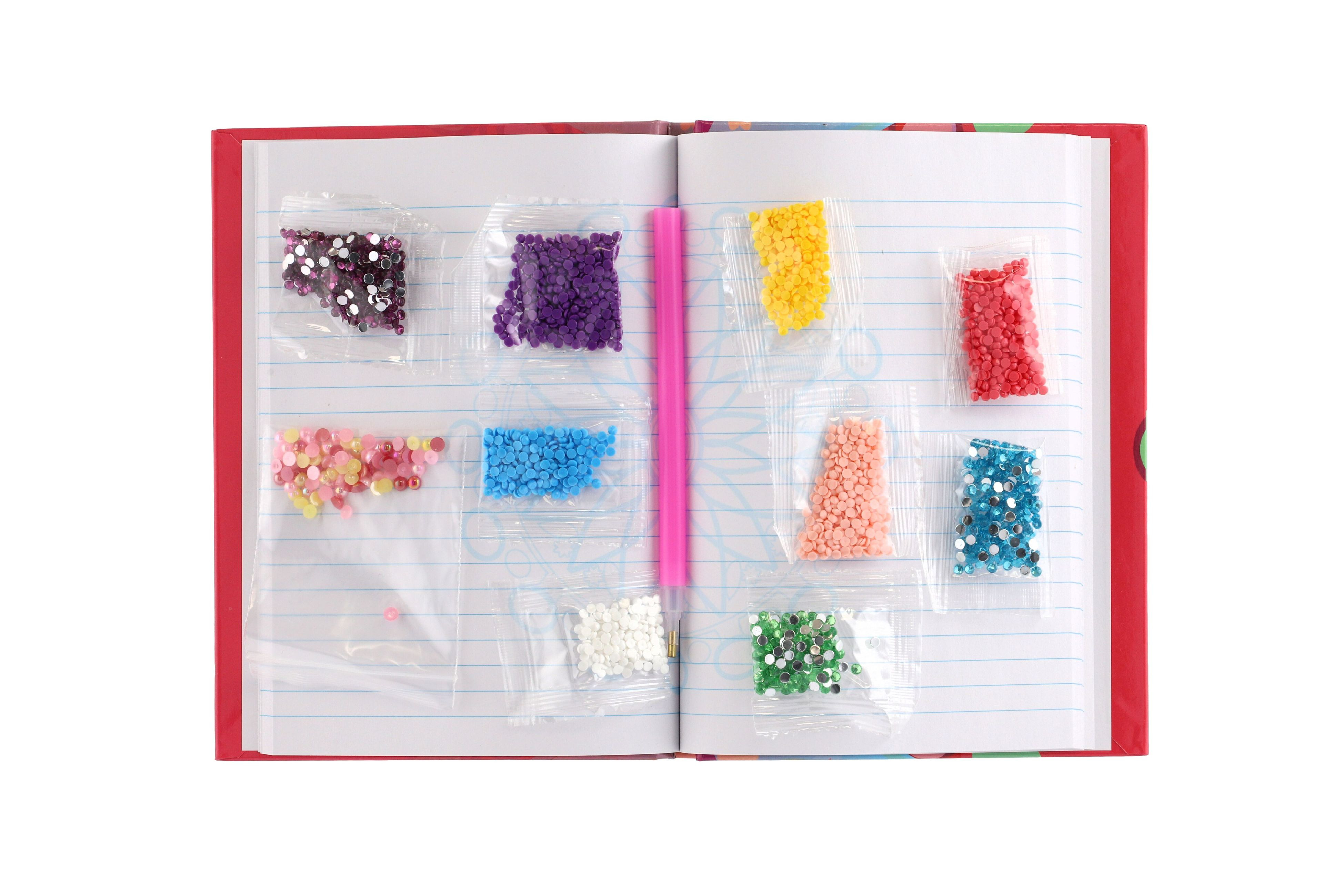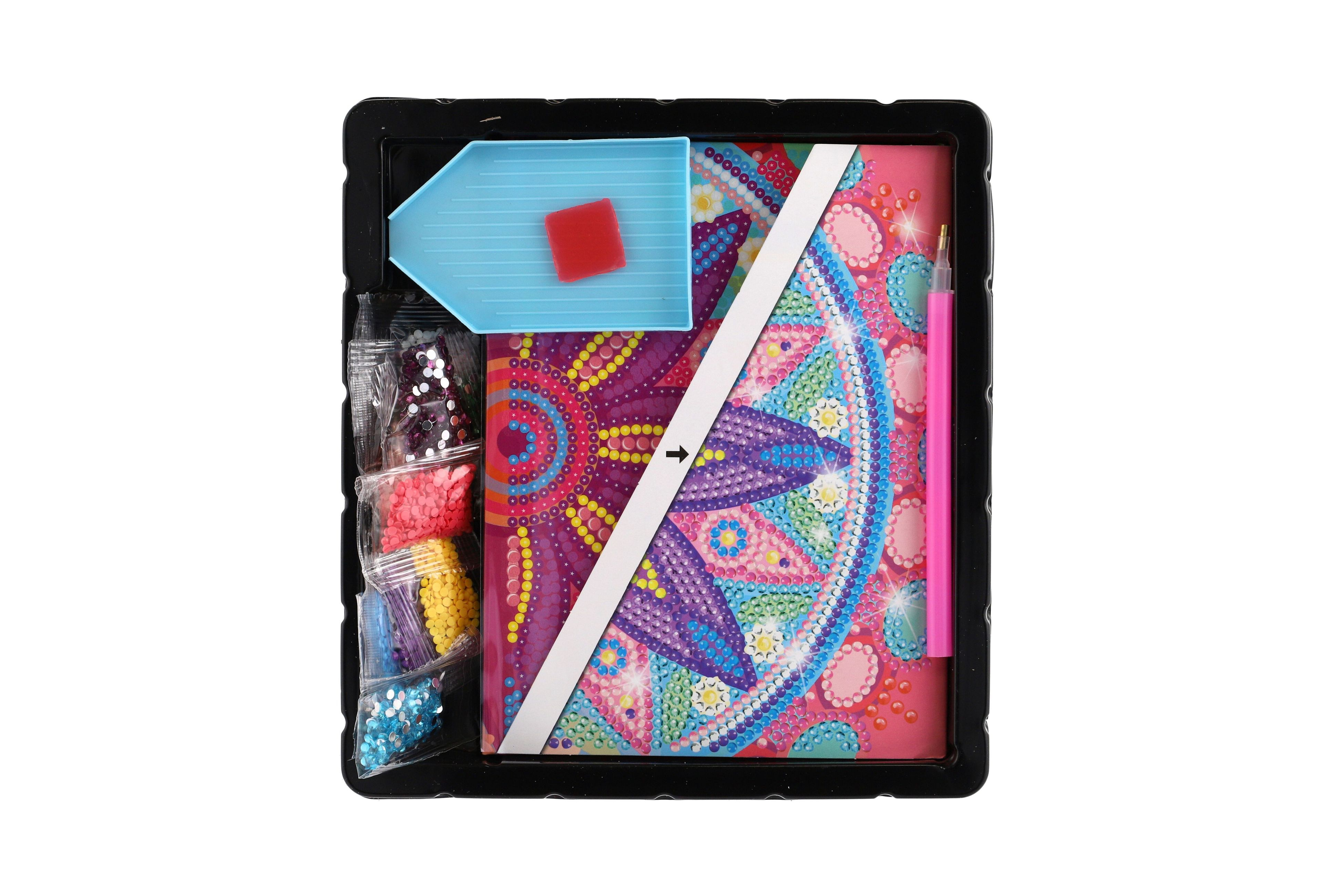 Vyrobte si ze svého deníku to nejkrásnější umělecké dílo! Pomocí lepících kamínků / "diamantů" vytvoříte originální deník, který ve Vašem okolí nikdo nemá! Obsahuje: blok ( 13x18 cm ), lepící čtvereček, cca 1500 ks kamínků (10 barev), třídírna na kamínky, speciální tužku na přenos kamínků a návod k použití. Rozměr balení: 19 x 21 x 3 cm Vhodné pro děti od 6 let