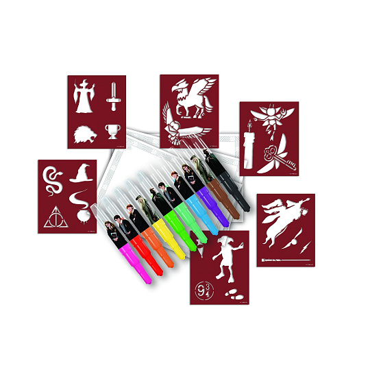 Kreativní sada fixy foukací 10ks se šablonami Harry Potter v krabici 38x28cm