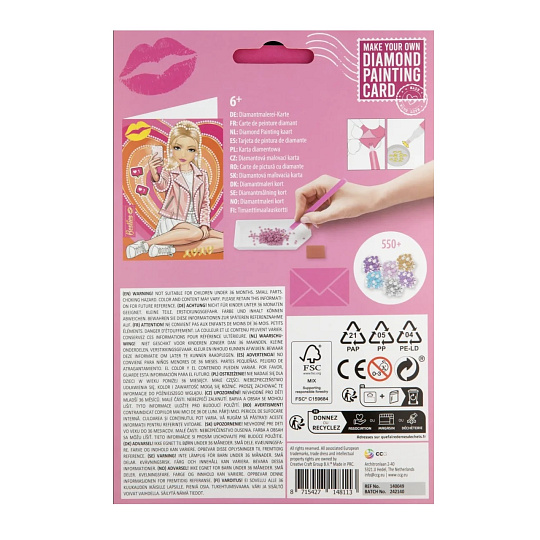 Kreativní set diamantové malování obsahuje obrázek/předlohu, 550+ kamínků/diamantů, aplikační pero, lepící čtvereček, tácek a také obálku, aby hotový obrázek mohl být také použit jako dárek pro kamarádku. Pomocí nalepování kamínků na předlohu vznikne nádherný obrázek 18x13 cm