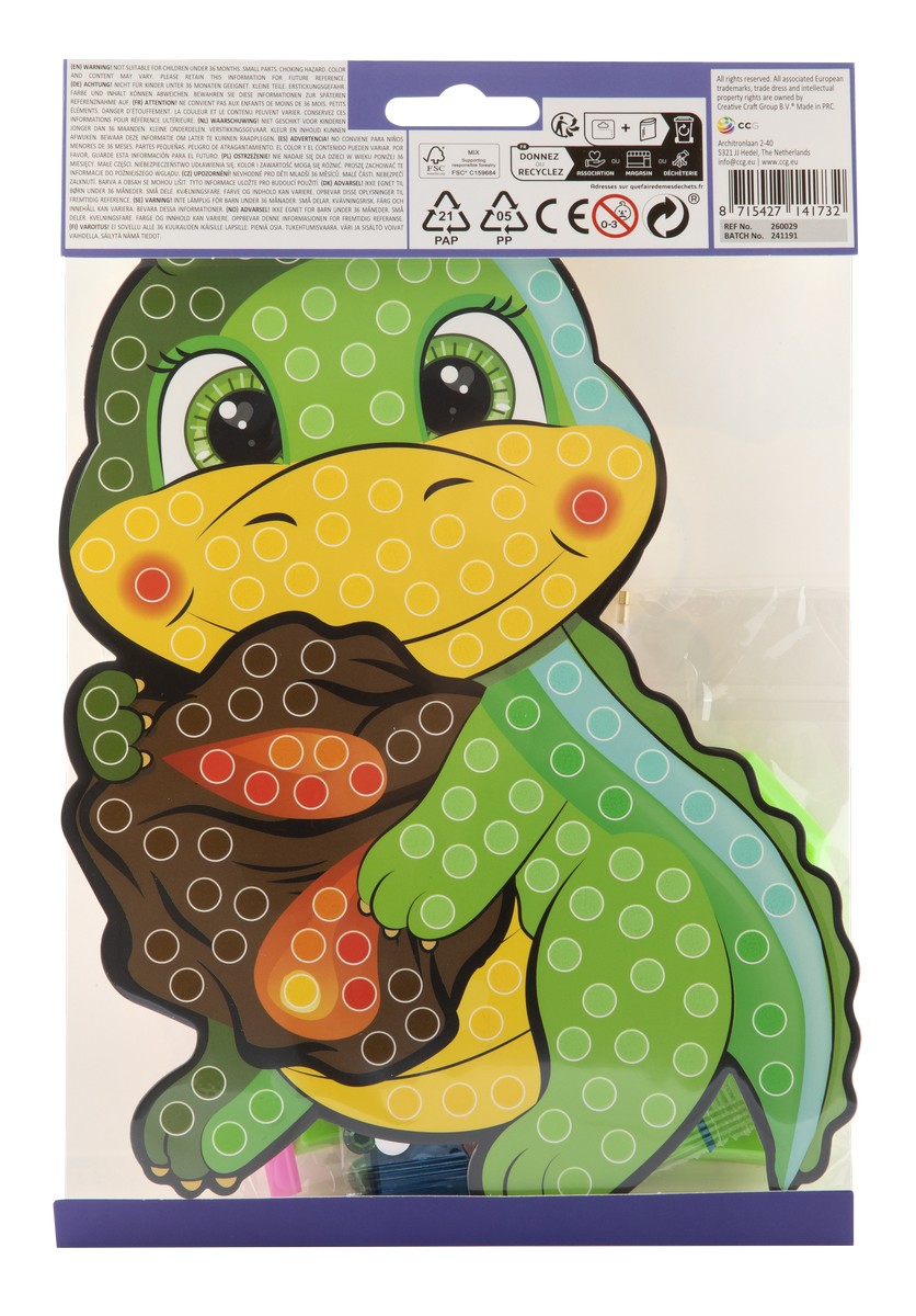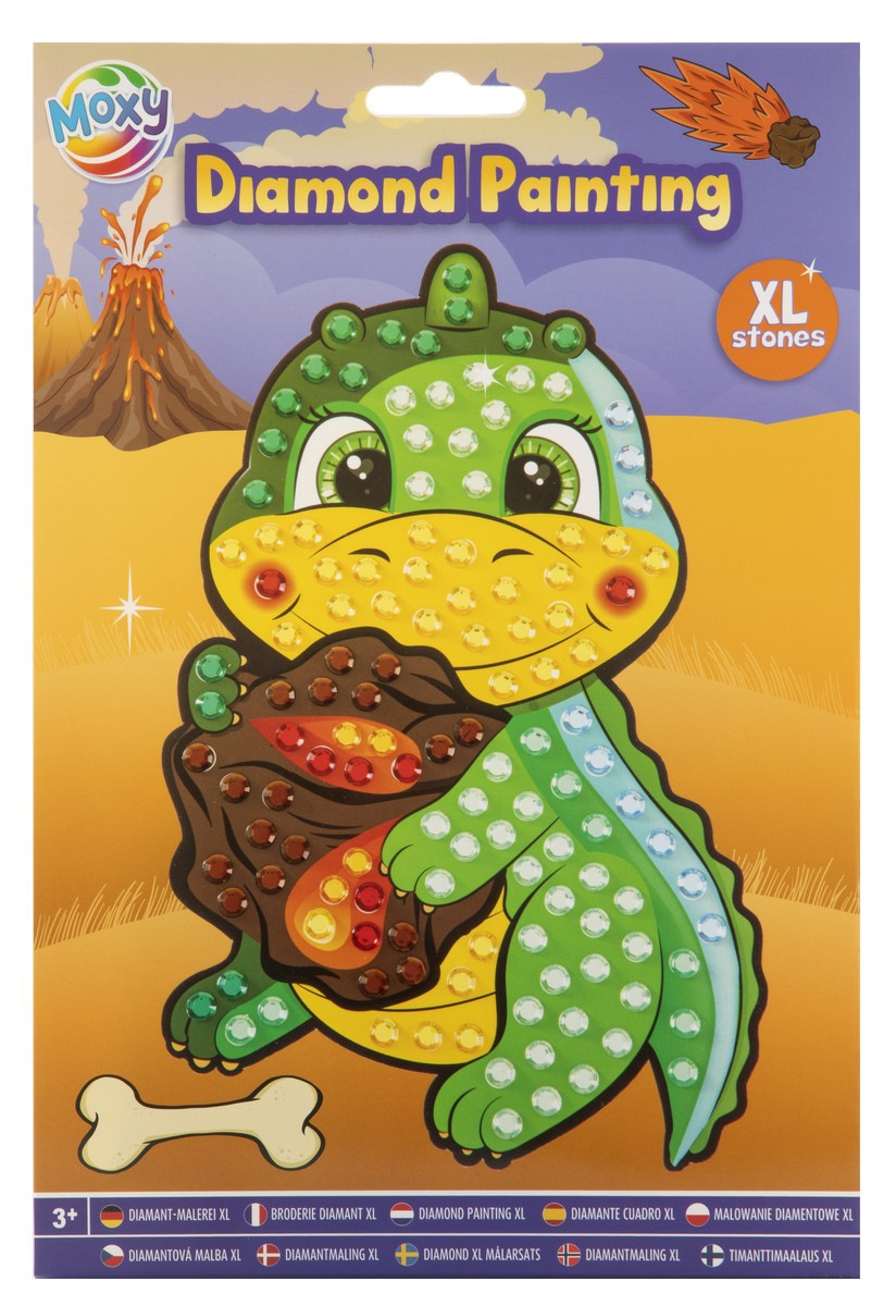Kreativní set diamantové malování velikosti A5 obsahuje velké XL kameny/drahokamy, předlohu/obrázek, vosk k nalepení kamínků, pero k manipulaci s diamanty a lepení a tácek pro snazší roztřídění a práci. Na předlohu umísti kameny a vznikne nádherný diamantový obrázek dinosaura, který bude zdobit tvůj pokojiček.