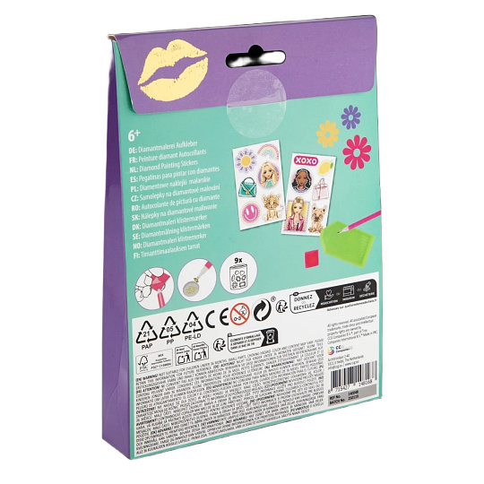 Kreativní set diamantové malování samolepky obsahuje 12 kusů samolepek k vytvoření, kamínky/diamanty, aplikační pero, lepící čtvereček a tácek, 18x13x2,5 cm