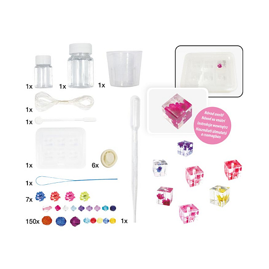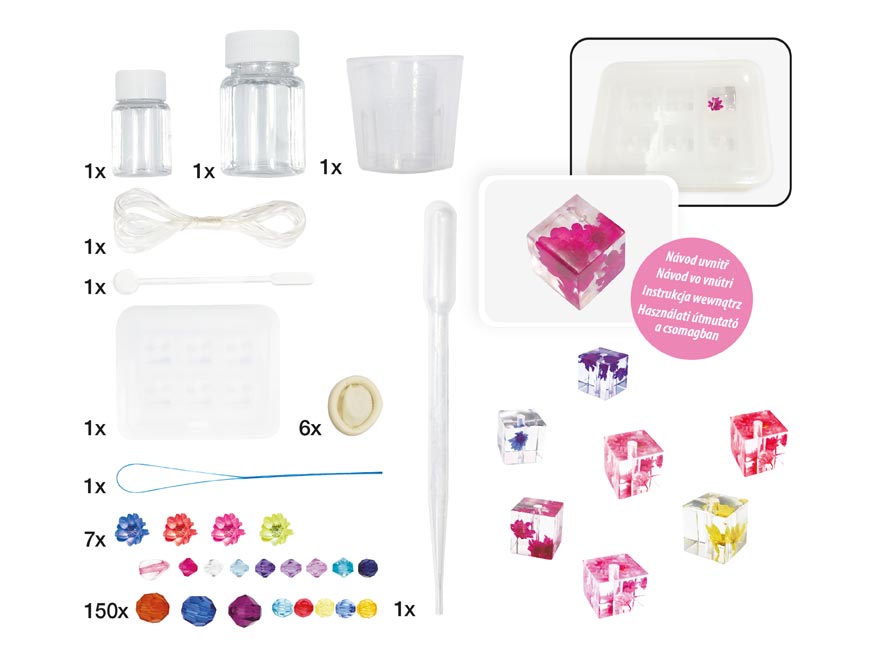 Kreativní set - epoxidové náramkyBALENÍ OBSAHUJE:- 2 x lepidlo celkem 50 g- 1 x míchací tyčinka- 1 x silikonová forma- 1 x plastová odměrka- 1 x šňůrka,- 1 x pipeta- 1 x jehla- 7 x květina- 6 x návlek na prst- 150 x korálek- 1 x návod k použitíVAROVÁNÍ: Nevhodné pro děti do 3 let. Obsahuje malé části, hrozí nebezpečí udušení!Uvedená cena je za 1 balení.
