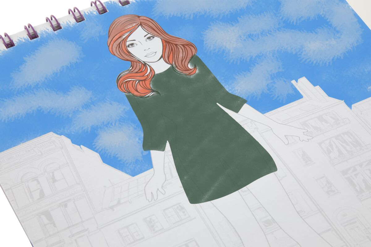 Kreativní set ve formě kroužkového bloku s motivem designu a módního návrhářství obsahuje 36 listů předloh, které je možné vymalovat s pomocí 5 listů šablon a doplnit pomocí přiložených samolepek