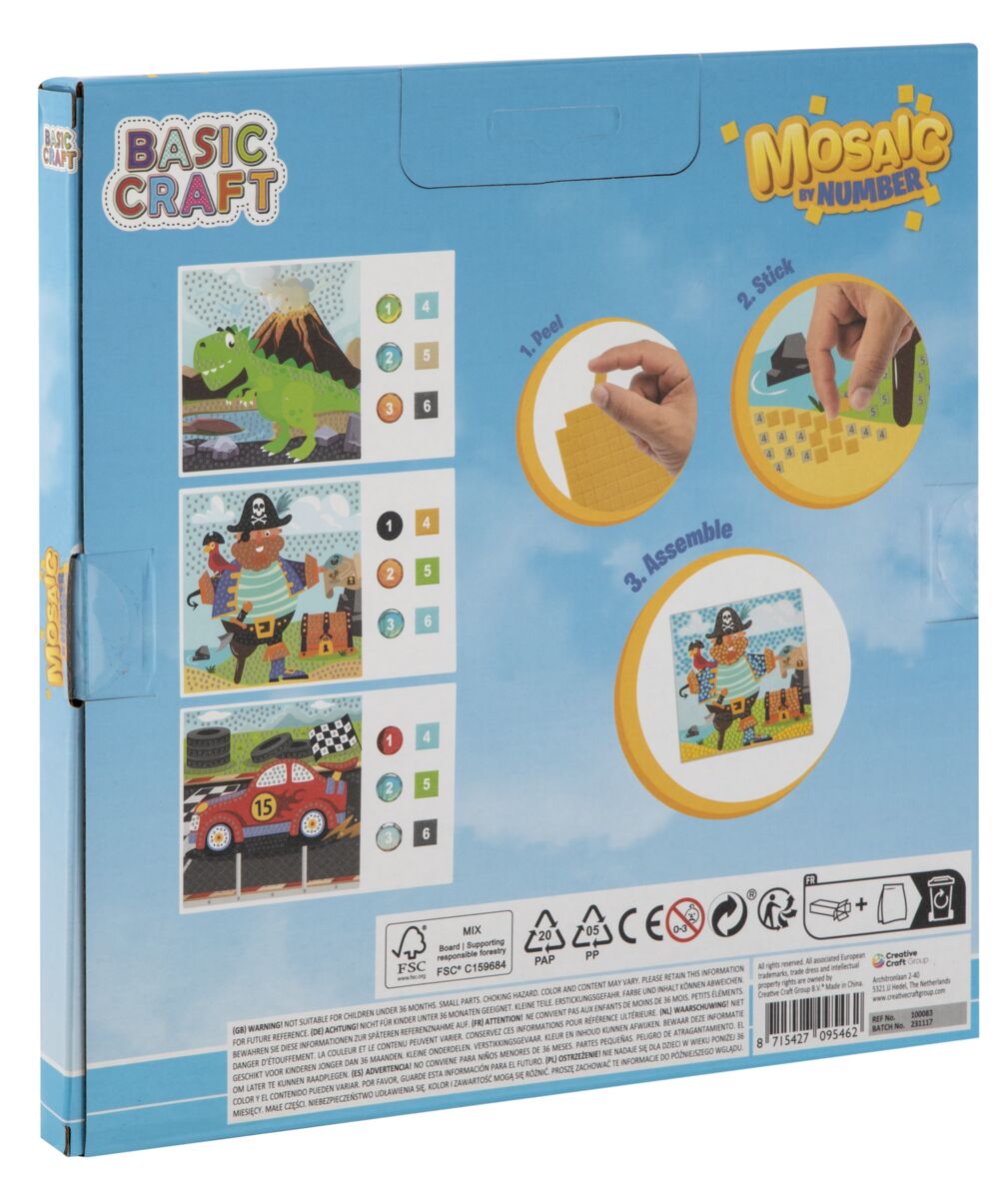 Kreativní set mozaika podle čísel 22x22 cm, nalep správně přiložené samolepící prvky podle čísel a vytvoř si krásný obrázek, sada obsahuje 3 různé obrazy/předlohy