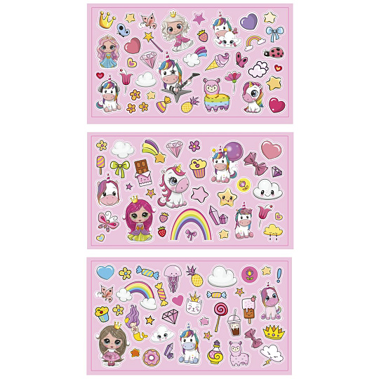 Kreativní set obsahující 2 scenérie/prostředí, kam můžete nalepit přes 100 přiložených samolepek a vytvořit si tak svůj originální obrázek. Samolepky se dají lehce odlepit a nalepit jinam. Samolepky lze lepit i na sklo/okna. 29x21 cm