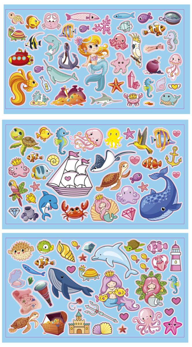 Kreativní set obsahující 2 scenérie/prostředí, kam můžete nalepit přes 100 přiložených samolepek a vytvořit si tak svůj originální obrázek. Samolepky se dají lehce odlepit a nalepit jinam. Samolepky lze lepit i na sklo/okna. 29x21 cm