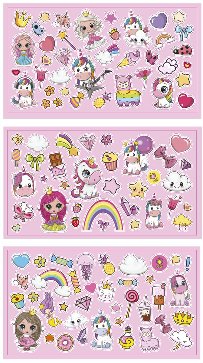 Kreativní set obsahující 2 scenérie/prostředí, kam můžete nalepit přes 100 přiložených samolepek a vytvořit si tak svůj originální obrázek. Samolepky se dají lehce odlepit a nalepit jinam. Samolepky lze lepit i na sklo/okna. 29x21 cm