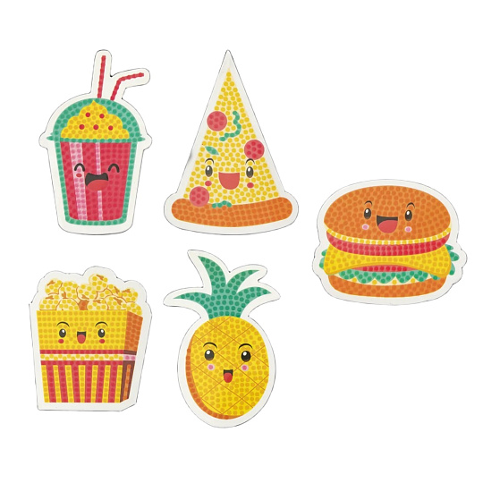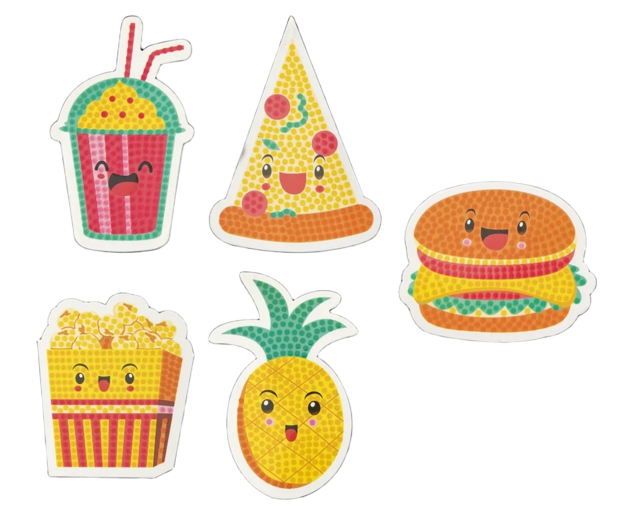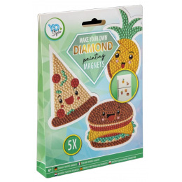 Kreativní sada na výrobu diamantových magnetů, které ozdobí lednici nebo každý povrch, kam lze magnety umístit. Sada obsahuje 2850+ diamantů/kamínků, předlohu/magnety k dokončení - 5 kusů, aplikační pero, lepící čtvereček a tácek, 18x13 cm